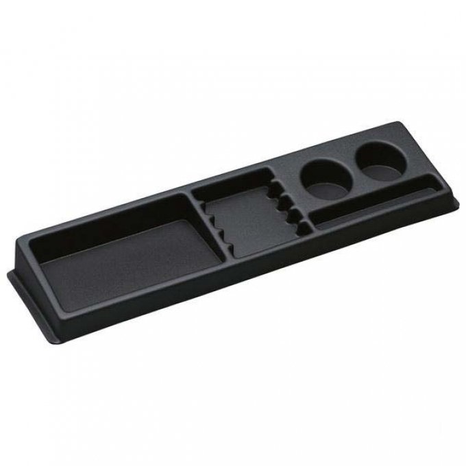* 2 Universalfächer * 5 Kassetten-Einsteckfächer * 2 Becherhalter Material: Kunststoff Art Fächer und Fußmatten: Ablage, Maße (LxBxH): 57 x 15 x 6,5 cm, Baujahr: ab Bj. 80, Farbe: schwarz, Modell: VW T2