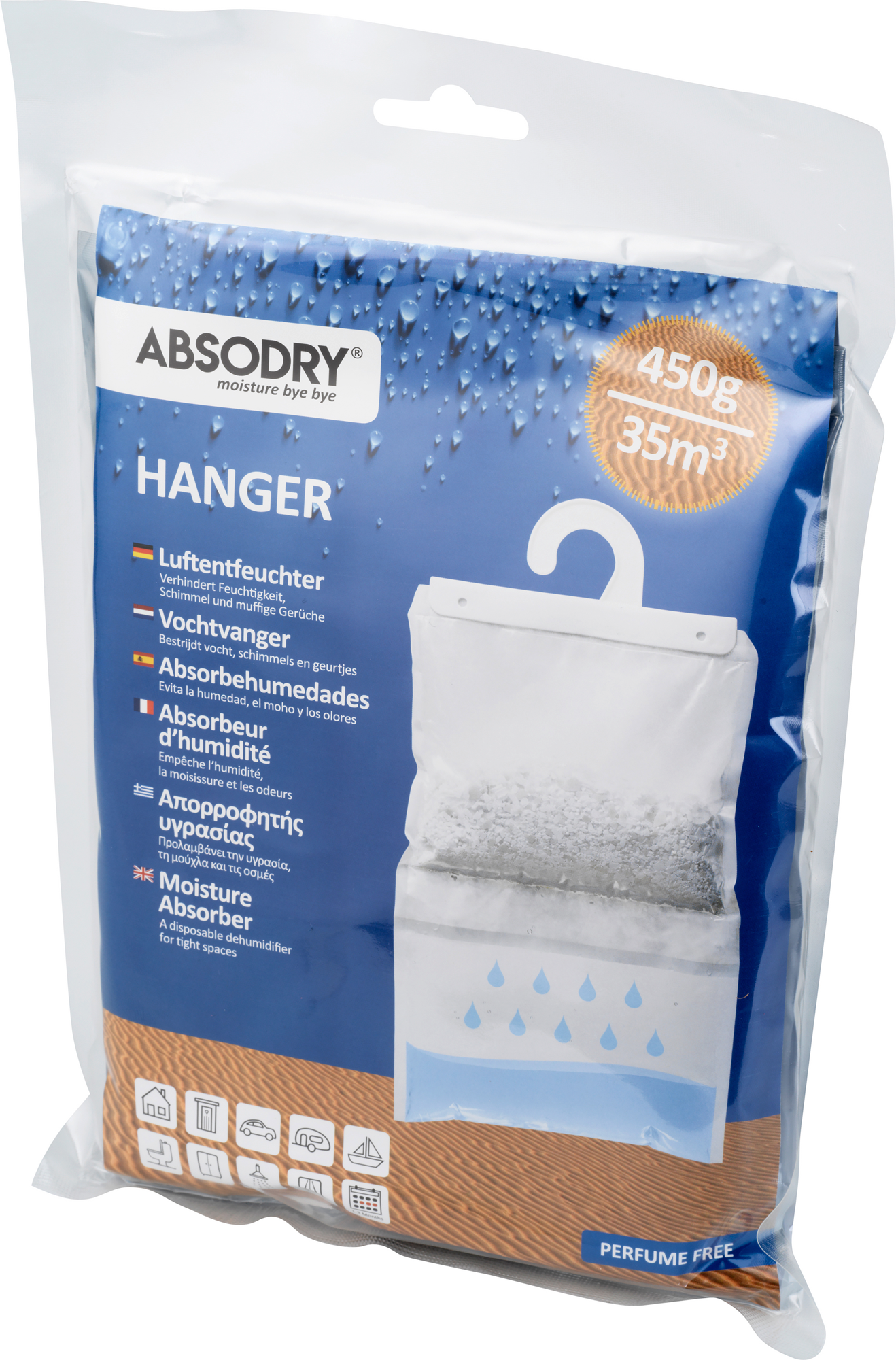 Absodry Classic Standard Hanger Raumentfeuchter 450 g für 35 m³ mit Einwegbeutel – Luftentfeuchter & Luftreiniger