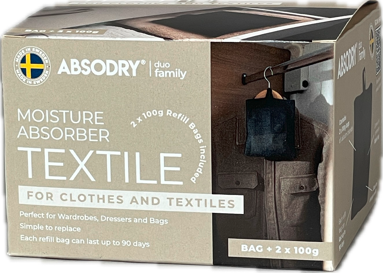 Absodry Duo Family Entfeuchter für Kleidung und Textilien mit 2 x 100 g – Luftentfeuchter & Luftreiniger