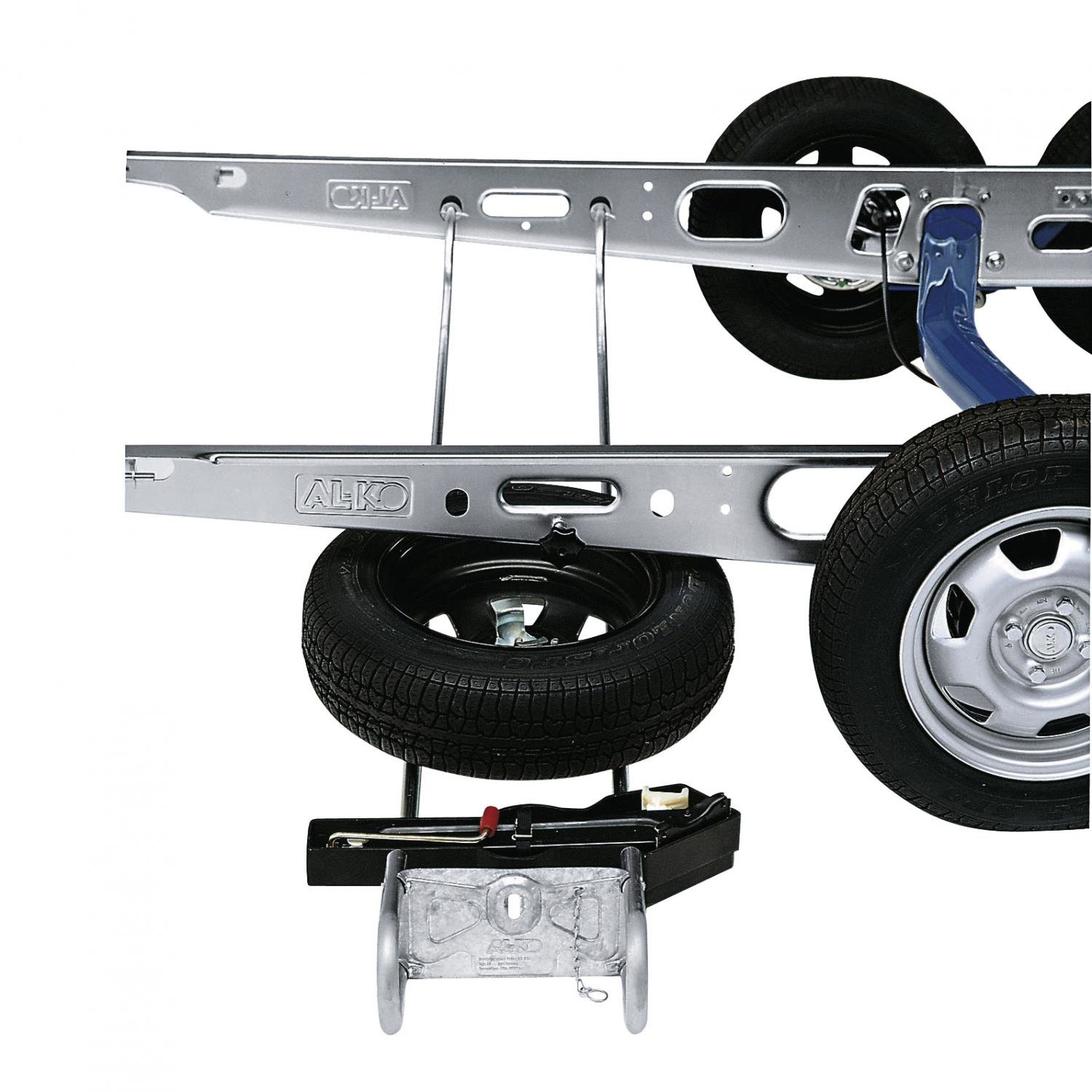 Wird an den beiden Längsholmen des Fahrgestells montiert, herunterklappbar. Keine weitere TÜV Abnahme nötig. Vom ADAC und DCC für ein besseres Fahrverhalten empfohlen. Aus verzinktem Stahlrohr, passend für fast alle Ersatzreifen. Einfache Bedienung durch Teleskoparme. Passend für AL-KO-Chassis ab Baujahr 1985. Hier sind entsprechende serienmäßigen Aufnahmebohrungen vorhanden. Typ 5 für Breitreifen ab 15″ 205er. Typ Rahmenabstand (von Außenkante zu Außenkante) AL-KO Typ Gewicht 2125 – 155 cm209516 / EH1 B6,8 kg3145 – 185 cm209513 / EH1 C7,7 kg5146,5 – 181,5 cm ab 15″ 205er241860 / EH1/BR E7,7 kg Art Anhängetechnik: Ersatzrad-Halterung, Ausführung: 125 – 155 cm Rahmenabstand, Farbe: silber, Gewicht: 6,8 kg, Material: Stahl