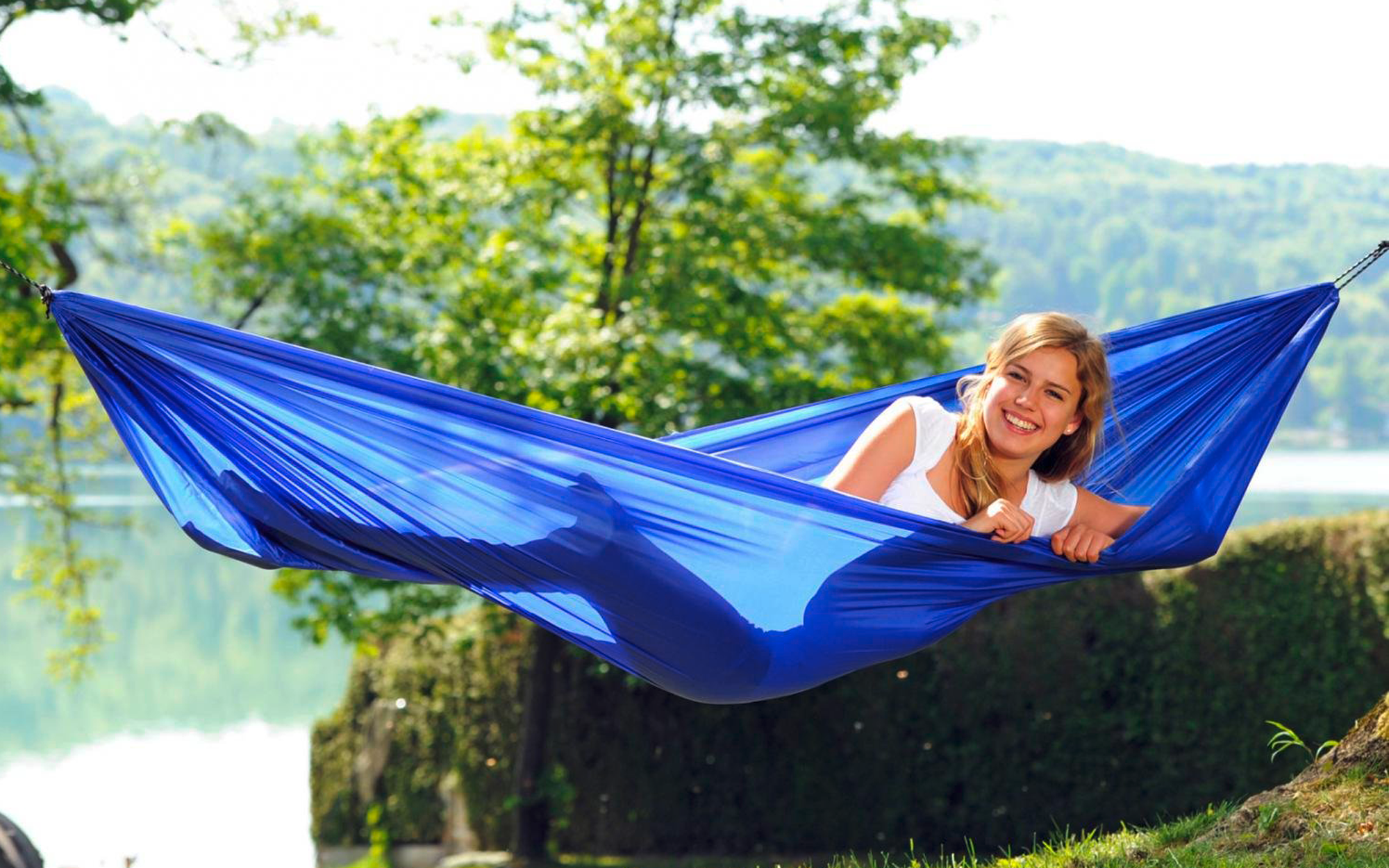 Die verstellbare All-in-One-Lösung – egal ob für zu Hause oder Unterwegs! Eine extra große und besonders leichte Hängematte mit integriertem Seil und Haken, zur Anbringung werden keine weitere Haken oder Seile benötigt. Überaus stabiles, atmungsaktives und hautfreundliches Material. Belastbar bis: 120 kg, Liegefläche (LxB): 275 x 140 cm, Material: 100 % Polyester, Farbe: blau, Gewicht: 0,45 kg