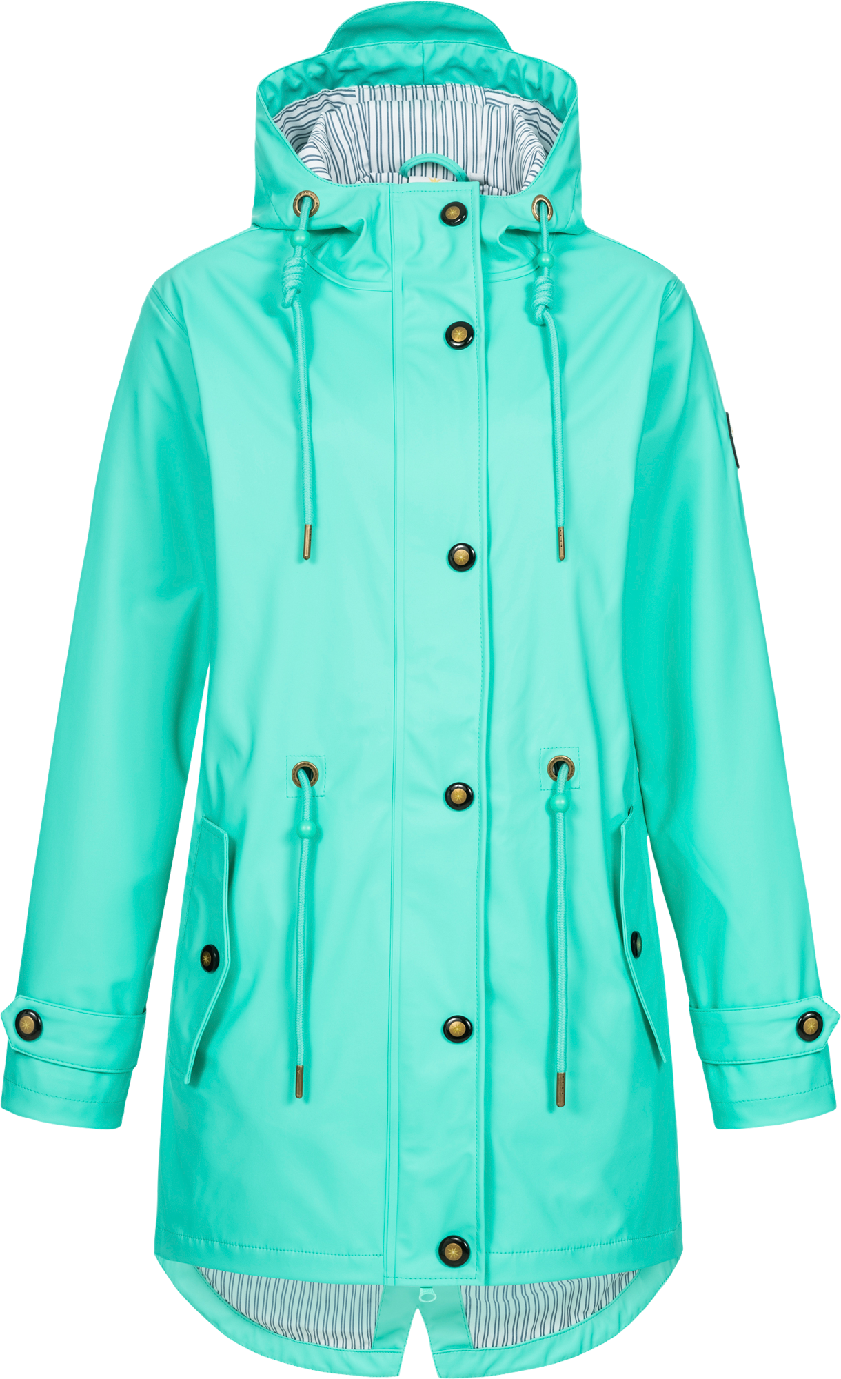 Maritimer Regenmantel im klassischen Design. Details: wasserdicht, winddicht, verschweißte Nähte, verstellbare Kapuze, 2 Außentaschen, 2 Innentaschen, Taille weitenregulierbar, 2 Wege-Reißverschluss, Ankerglut Markenlogo auf der linken Seite Art Jacken: Outdoorjacke, Kapuze: Ja, Nahtverschweissung: Ja, Wasserdicht: Ja, Winddicht: Ja, Geschlecht: Damen, Material: 100% Polyurethane, Farbe: türkis, Größe: 50