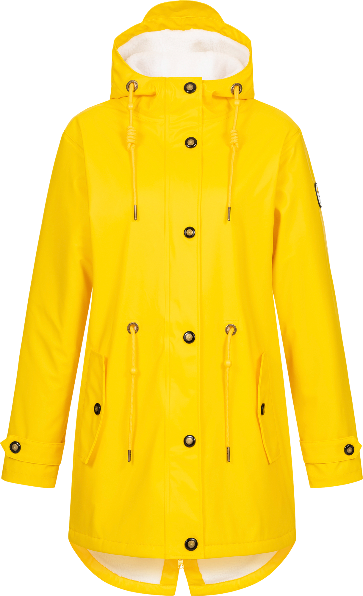 Details * Maritimer Regenmantel im klassischen Design * Verlässlicher Regenschutz dank 10000 mm wasserdichtem Obermaterial * Winddichtes Polyurethan (PU) Außenmaterial * Mit verschweißten Nähten und fester anpassbarer Kapuze * Leicht taillierte Passform mit Weitenregulierung in der Taille * 2-Wege-Reißverschluss für komfortable Tragemöglichkeiten * Teddy Fleece Warmfutter * Taftfutter im Ärmel * Hochwertige, außergewöhnliche Knöpfe * Ankerglut Markenlogo auf der linken Armseite Art Jacken: Mantel, Kapuze: Ja, Nahtverschweissung: Ja, Wasserdicht: Ja, Winddicht: Ja, Geschlecht: Damen, Material: 100% Polyurethane, Farbe: gelb, Größe: 44