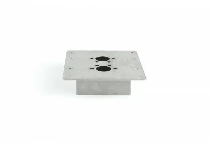 Mit der Bodenmontagehalterung können Sie die Luftstandheizung Air 2D (ehemals Planar 2D) einfach auf dem Fahrzeugboden installieren.Dabei wird die Luftstandheizung auf der Oberseite der Montaghalterung montiert. Durch die spezielle Konstruktion ist es möglich, Abgasauslass, Lufteinlass und den Kraftstoffpumpeneinsatz verdeckt unter den Fahrzeugboden zu legen. Das spart Platz und bietet Ihnen eine passgenaue Lösung für die Heizungsinstallation in verschiedenen Anwendungsbereichen (Nutzfahrzeuge, Boote). Die Abschlusskanten der Montagehalterung sollten innen und außen hermetisch abgedichtet werden. Technische Produktinformationen * Material: Edelstahl – Güteklasse 316 * Materialstärke: 2 mm * Maße oben: 160 x 150 x 2 mm * Maße unten (bei 40 mm): 104 x 104 x 40 mm * Maße unten (bei 80 mm): 150 x 134,2 x 80 mm * Abgasauslass / Lufteinlass: Lochmass d 30mm Ausführung: 40 mm