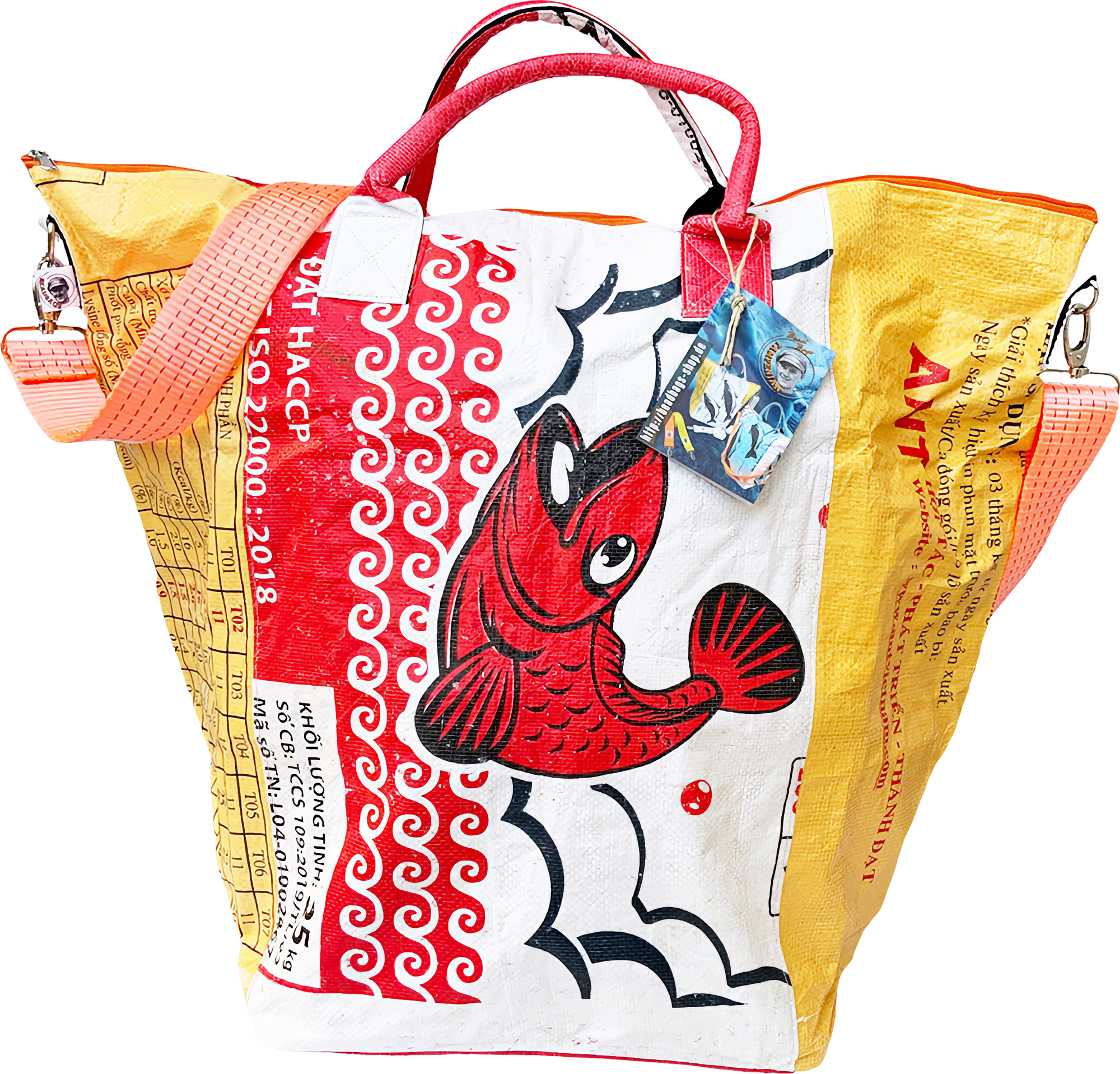 In der großen Allzwecktragetasche Die Tragetasche lässt sich nicht nur die komplette Wäsche super easy verstauen. Durch den Tragegriff und dem aus recycelten Hafengurten hergestelltem Schultergurt ist der Transport von großen Einkäufen, schweren Dingen u.v.m unkompliziert und einfach. Verstauen wird super easy. Auch einsetzbar als Tragetasche, für den Urlaub, zum Einkaufen sowie zum Verstauen von Zeitungen, Gartenabfällen, Kaminholz, Kinderspielzeug, Flaschen und vieles mehr! Die Allzwecktragetasche ist nicht nur total praktisch, vielseitig einsetzbar und ein stylischer Hingucker, sondern zusätzlich komplett aus recycelten Material! Genauso auch der auffällige orangene Tampenjan Schultergurt, welcher ursprünglich als Schiffscontainerspanngurt im Hamburger Hafen diente. Er ist sehr widerstandsfähig, lässt sich super einfach abnehmen und ist somit auch für andere Taschen verwendbar. Durch den Kauf dieser Allzwecktragetasche wird eine langfristige Umweltschonung unterstützt und der Lebensunterhalt für Menschen in Kambodscha gesichert. Die kleine Allzwecktragetasche Die Tragetasche ist der perfekte Begleiter für alle Haushalte zum Verstauen und Transportieren. Einsetzbar als Tragetasche, für den Urlaub, zum Einkaufen, zum Verstauen von Zeitungen, Gartenabfällen, Kaminholz, Kinderspielzeug, Flaschen und vieles mehr! Die perfekte, große und bequem zu tragende Allzwecktragetasche. Zusätzlich wurde sie aus 100 % recycelten Materialien hergestellt. Mit ultrastrapazierfähigem, orangenem Schultergurt, welcher ursprünglich als Schiffscontainerspanngurt im Hamburger Hafen diente. Der abnehmbare Tragegurt vereinfacht das Transportieren um ein Vielfaches! Er ist extrem widerstandsfähig, lässt sich super einfach abnehmen und ist somit auch für andere Taschen verwendbar. Die Motive können immer wieder variieren, die Grundfarbe jedoch bleibt immer gleich. Jede Tasche ist ein Unikat. Details: * Umweltschonend durch Verwendung von recycelten Materialien * Produziert unter strenger Kontrolle der World Fair Trade Organisation * 100 Prozent Fair Trade, vegan und nachhaltig dank Upcycling * Reißfest, wasserundurchlässig und erprobt in tropischen Stürmen * Jedes Produkt ist ein Unikat aus Handarbeit * Gefertigt aus recycelten Reissackmaterial * Vielfältig einsetzbare Tragetasche * Widerstandsfähiger Tampenjan Schultergurt aus dem Hamburger Hafen * Werden von körperlich beeinträchtigen Menschen in Kambodscha hergestellt und unterstützen Menschen in der dritten Welt Art Tasche: Umhängetasche, Ausführung: Klein, Farbe: weiß/rot/gelb, Gewicht: 0,43 kg, Maße (LxBxH): 27 x 27 x 46 cm, Material: recyceltes Polypropylen ca. 95%
