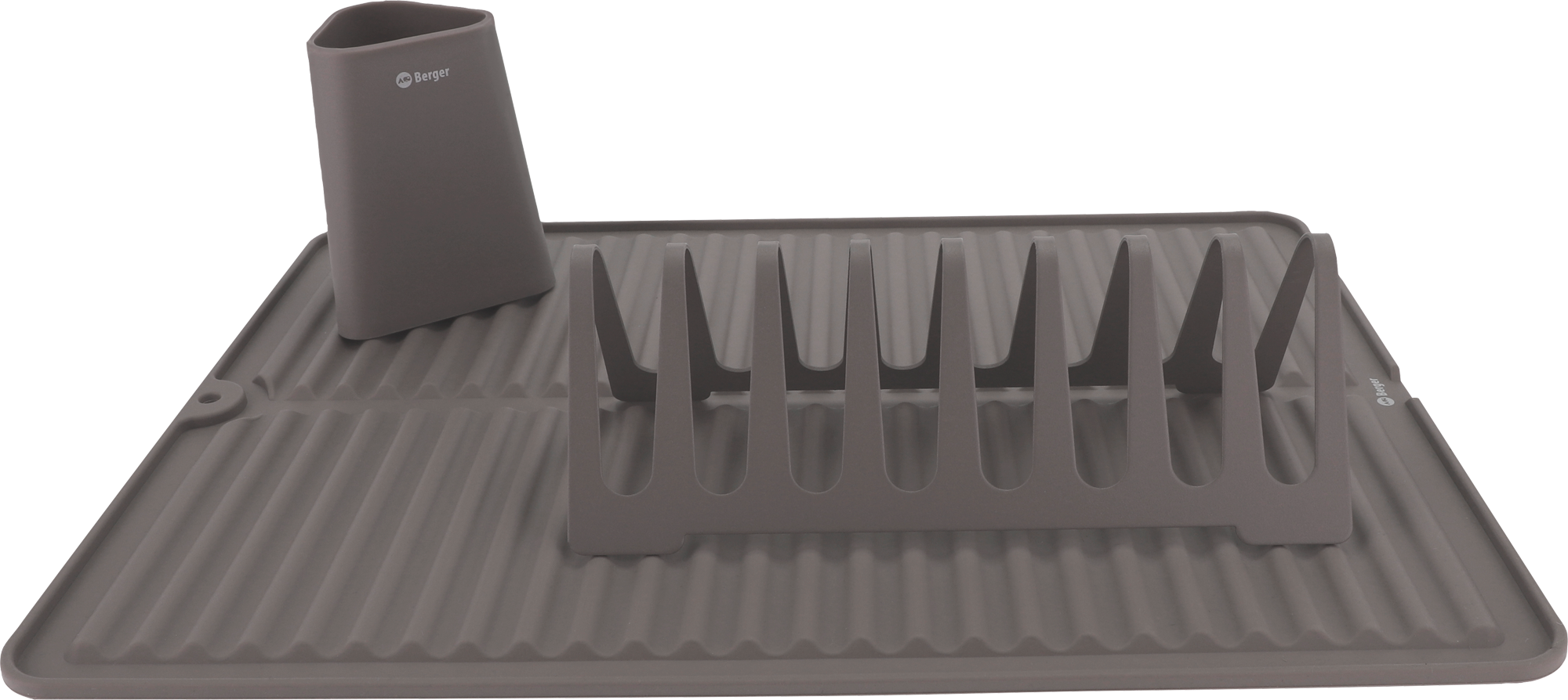 Berger Abtropfgestell Set 3-tlg. mit Geschirrhalter, Abtropfmatte und Besteckhalter grau – Spülhilfen