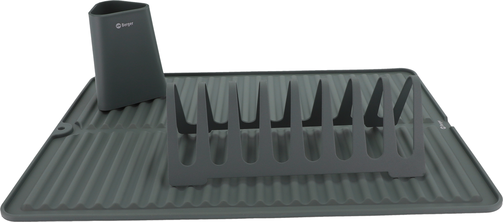 Berger Abtropfgestell Set 3-tlg. mit Geschirrhalter, Abtropfmatte und Besteckhalter grün – Spülhilfen
