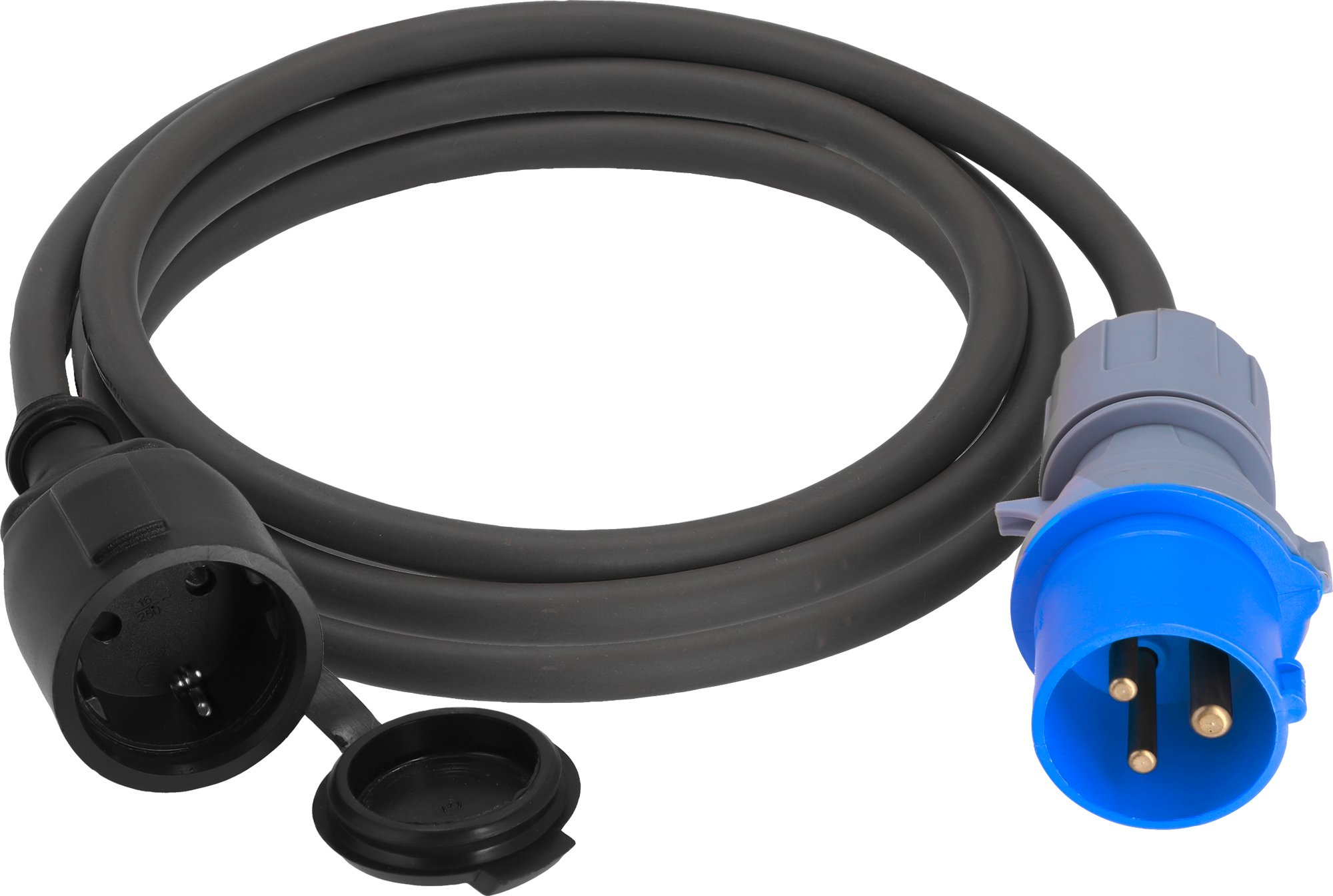 CEE-Stecker auf Schutzkontakt-Buchse Verlängerungskabel Ideal für den sicheren Anschluss von Geräten mit Schutzkontaktstecker an eine CEE-Steckdose. Das Kabel besteht aus langlebigen Materialien wie PA66, PC, PVC, Kupfer und Gummi und ist nach Schutzart IP44 spritzwassergeschützt. Technische Daten: * Nennspannungsbereich: 200-250 V~ * Max. Stromstärke: 16 A * Kabeltyp: H07RN-F3G2.5 * Material: Polyamid 66 (PA66), Polycarbonat (PC), Polyvinylchlorid (PVC), Kupfer, Gummi * Schutzart: IP44 (spritzwassergeschützt) Art Kabel, Kupplung, Schalter und Stecker: Adapter, Ausführung: 5m, Gewicht: 1377 g