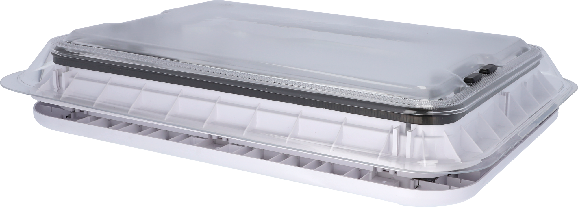 Die Berger Dachhaube ist die clevere Belüftungs- und Lichtlösung für Wohnmobilen, Wohnwagen oder anderen Camping-Fahrzeugen. Mit dem Bügel lässt sich die Haube leicht öffnen und schließen. Sie wird zusammen mit einem stufenlos verstellbaren Moskitonetz, Verdunkelungsrollo und LED´s (nur bei Artikel 750103) geliefert, um den Komfort und die Funktionalität zu verbessern. Der Verdunklungsrollo dient dazu, das Tageslicht im Innenraum zu reduzieren und vollständig abzudunkeln. Optimal mit der stufenweisen Einstellung des Rollos. Details: * Ausschnittmaß: 700 × 500 mm * Einbaustärke: für Dachstärken von 28–60 mm geeignet * Zulassung: bis Höchstgeschwindigkeit 130 km/h * Öffnung: manuell per stabiler Bügelmechanik * Moskitonetz: stufenlos verstellbar, feinmaschig * Verdunkelungsrollo: stufenlos verschiebbar * LED-Beleuchtung: integrierte, stromsparende LEDs (nur bei Artikel 750103) Material: * Moskitonetz: 100 % Polyester – langlebig, herausnehmbar * Verdunkelungsrollo: 100 % Polychlorid – lichtundurchlässig, abwischbar * Rahmen & Kuppel: robuster, UV-stabilisierter Kunststoff Lieferumfang: * Berger Dachhaube 70 × 50 cm Transparent * stufenlos verstellbares Moskitonetz * stufenlos verschiebbares Verdunkelungsrollo * integrierte LED-Beleuchtung (nur bei Artikel 750103) * Montagerahmen inkl. Montagematerial * leicht verständliche Einbau- und Bedienungsanleitung Hinweis: Zugelassen für eine Höchstgeschwindigkeit von 130 km/h Dachhauben Dachlüfter: Aufrüstbar auf, Dachhauben Dachlüfter: Eigenschaft Rollo, Dachhauben Dachlüfter: Haubenglas, Dachhauben Dachlüfter: Passend RM, Dachhauben Dachlüfter: Passend WW, Dachhauben Dachlüfter: Passendes Ersatzglas, Ausführung: Transparent, Dachstärke: 28 – 60 mm, Maße Ausschnitt (LxB): 0 x 0 cm
