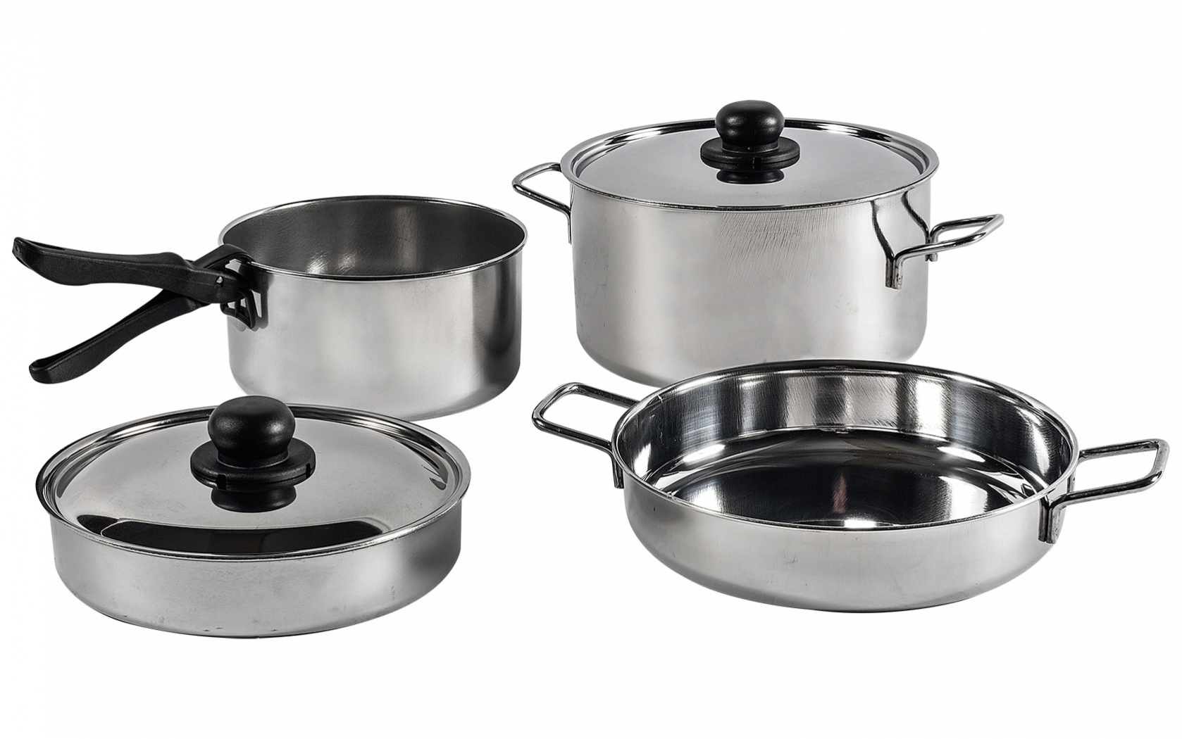 Berger Edelstahl Topf-Set 7-tlg. stapelbar mit abnehmbarer Griffzange und Verschlussgurt – Kochgeschirr-Sets