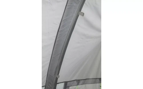 Für eine gute Belüftung sind Dauerbelüftungen an der Vorderwand sowie Moskitogaze an der Vordertür und an den seitlichen Fenstern integriert. Das Teilvorzelt verfügt zudem über einen zusätzlichen Seiteneingang auf der rechten Seite. Die Höhe im Zelt beträgt 243 cm, was ein angenehmes Raumgefühl schafft und ausreichend Platz für Komfort bietet.