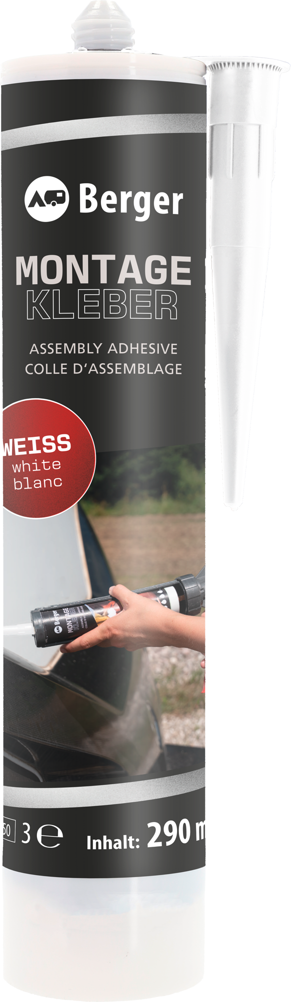 Universeller Hochleistungskleber für vielseitige Anwendungen Der Berger Kleber MS-Polymer Nr. 1-2 in Weiß ist ein silikonfreier, leistungsstarker 1K MS-Polymer Montagekleber für Klebe- und Dichtarbeiten im Wohnmobil sowie Wohnwagen. Perfekt für den Innenausbau: Er ist für mechanisch belastete Verbindungen an Schränken, Blenden, Verkleidungen oder Spiegeln gedacht und überzeugt mit extrem hoher Anfangshaftung und dauerelastischer Verbindung. Details: * primerlose Anwendung * extrem hohe Anfangshaftung und starke Endfestigkeit * einsetzbar bei saugenden und nichtsaugenden Klebeflächen * stoß- und vibrationshemmend * härtet auch unter Wasser aus * vor Hautbildung glättbar * dauerelastisch * überstreichbar mit Dispersionsfarben * überlackierbar * geeignet für Sanitärräume * lebensmittelrechtlich zugelassen * frei von Isocyanat, Lösemittel, PVC und Silikon * witterungs-, alterungs-, UV-, wasser- und salzwasserbeständig Anwendung: * Verarbeitungstemperatur: +5 °C bis +40 °C * Oberflächen mit Berger Multi Cleaner (Nr. 402408) gründlich reinigen und entfetten * Die Kartusche am Gewinde aufschneiden, die Düse aufschrauben und ggf. zuschneiden * Die gewünschte Schichtdicke einseitig mit der Kartuschenpresse in Raupenform auftragen, Teile justieren und fest andrücken * Erst nach vollständiger Durchhärtung mit geeigneten Produkten überlackierbar/überstreichbar Lösungsmittelhaltige Lacke/Farben und andere Medien können die Härtung blockieren oder zerstören. Zur Sicherstellung der Eignung des Produktes für die gewünschte Anwendung sind in jedem Fall Eigenversuche zu empfehlen. BasisMS PolymerAnfangshaftung (kg/m²)122Aushärtung/Endfestigkeit (mm/24 h)3AushärtesystemLuftfeuchtigkeitBruchdehnung (%)350Lagerfähigkeit (Monate)24Shore A Härte58Temperaturbeständigkeit (°C)-40 bis +100Verarbeitungszeit (Minuten)15Verarbeitungstemperatur (°C)+5 bis +40Verbrauch (ml/m²)25Zugspannung (N/mm²)2,6Empfohlene Klebeschichtdicke (mm)mindestens 3 Art Klebstoffe, Dichtstoffe: Dichtmasse, Füllmenge: 290 ml, Farbe: weiß