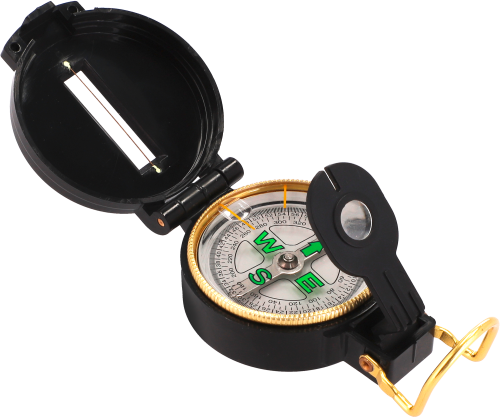 Kompass Ob beim Wandern oder im Gelände – dieser robuste Kompass liegt gut in der Hand und hilft dir, dich zuverlässig zu orientieren. Mit Lupe und präziser Zielvisierung. Ideal für unterwegs und um mit einer Karte zu navigieren. Technische Daten: * Maße (LxBxH): 7,5 x 5,5 x 2,7 cm * Gewicht: 48,5 g * Material: ABS, acrylic Lieferumfang: * 1 Kompass