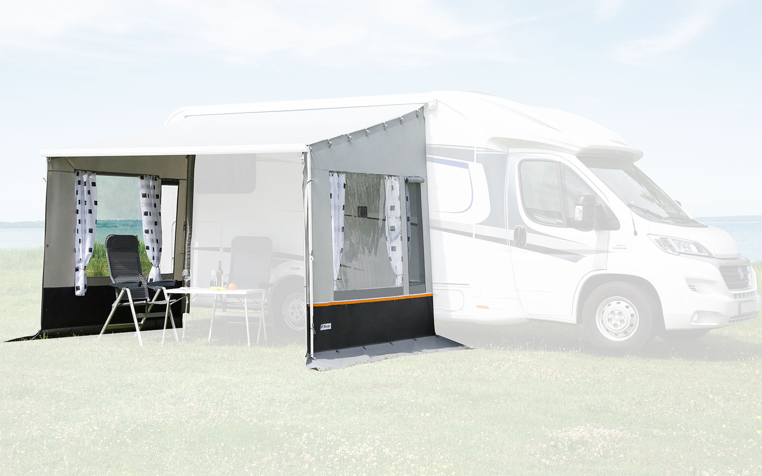 Passend für alle Thule Wand- und Dachmarkisen! Mit diesem durchdachten Wandsystem kannst du deine Markise Schritt für Schritt erweitern und zusätzlichen Wohnraum schaffen. Egal ob du einen seitlichen Windschutz wünscht oder mit einer zusätzlichen Vorderwand deine Markise zu einem Markisenzelt ausbauen möchtest. 2 Seitenwände: * Je ein großes Klarfolien- und ein verschließbares Moskitogazefenster (RV) * Schaumwulste zur Abdichtung am Fahrzeug * inkl. Andruckstangen * Verbindung zwischen Seitenwand und Markise über stabile Klammern * senkrechte Verbindung mit den Seitenwänden durch Reißverschluss Art Markisenwand /-Zelt: Seitenwand, Art Markisenzubehör: Markisen-Wände, Farbe: grau, schwarz, für Typ: Thule Markisen, Material: 100 % Polyurethan, Ausführung: XL, Anbauhöhe (von – bis): 260 – 280 cm