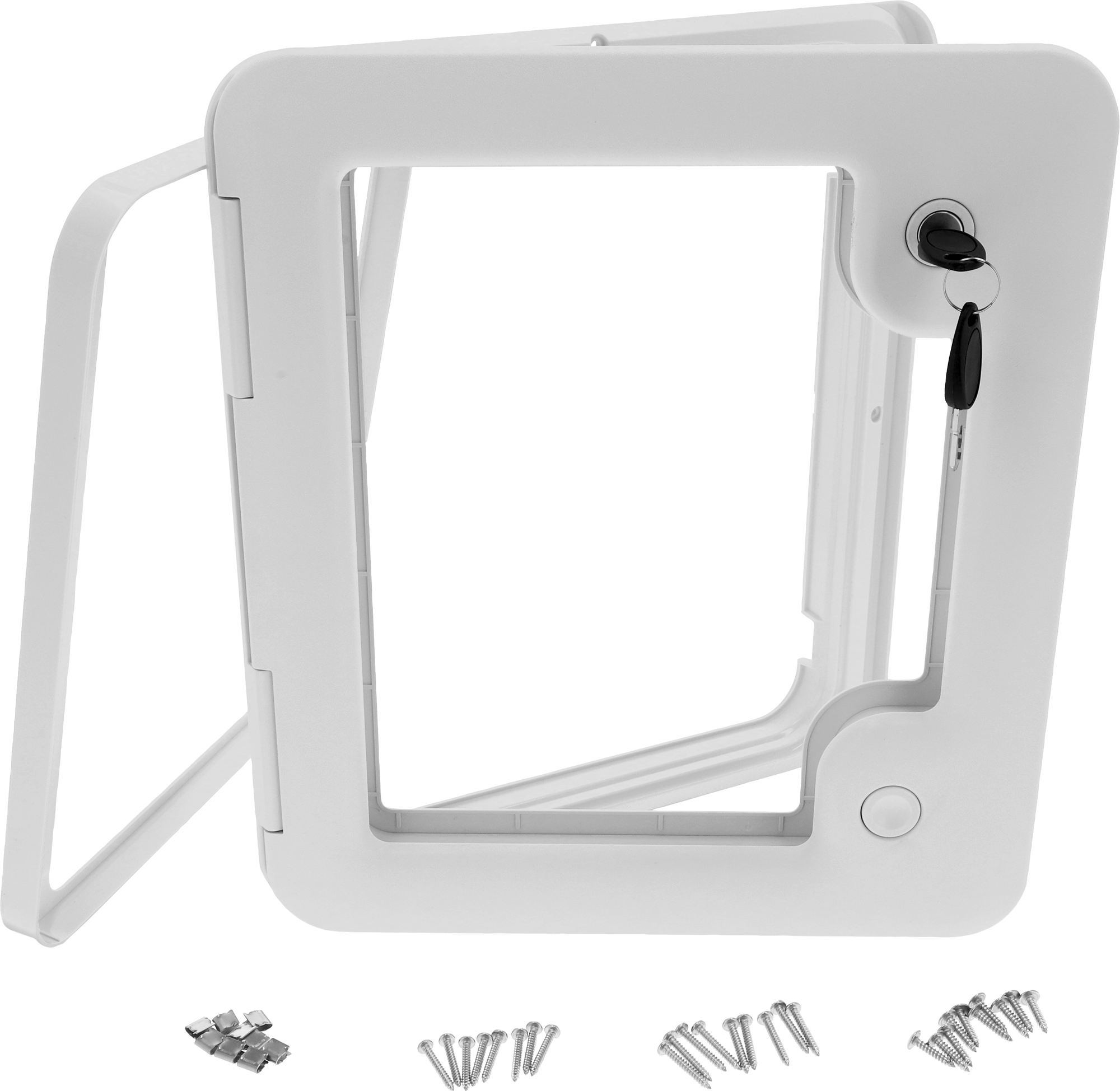 Berger Serviceklappe – für universellen Einsatz Die Serviceklappen sind für alle gängigen Wandstärken im Campingbereich geeignet, dadurch sind sie universell einsetzbar, beispielsweise als Toilettentanktür oder als Tür für kleine Fächer oder Abteile. Details: * Kompatibel mit Wandstärken von 26–46 mm * Hochfeste Aluminium-Sandwichplatte als Grundplatte * UV-beständiges Material * Edelstahlwelle am Scharnier * Selbstspannendes Hebelschloss, Fahrzeug-Universalzylinder wird mitgeliefert * Maximaler Öffnungswinkel: 180° * Verwendung als Toilettentanktür oder als Tür für kleine Abteile oder Fächer Technische Daten: * Material: Acrylnitril-Styrol-Acrylat (ASA) * Maße (LxBxH): SK-L: 37,9 x 33,1 x 4,6 cm SK-XL: 67,7 x 38,3 x 4,6 cm Lieferumfang SK-L (317646, 598066): * 1 x Serviceklappe * 1 x vormontiertes Schloss inkl. Schließzylinder * 2 x Schlüssel * Montagematerial Lieferumfang SK-XL (852199, 635121): * 1 x Serviceklappe * 2 x vormontiertes Schloss inkl. Schließzylinder * 4 x Schlüssel * Montagematerial Art Scharniere, Schlösser, Beschläge: Sonstiges, Ausführung: L, Farbe: weiß, Gewicht: 2 kg, Maße (LxBxH): 37,9 x 33,1 x 4,6 cm, Passend für: Wandstärken von 26–46 mm