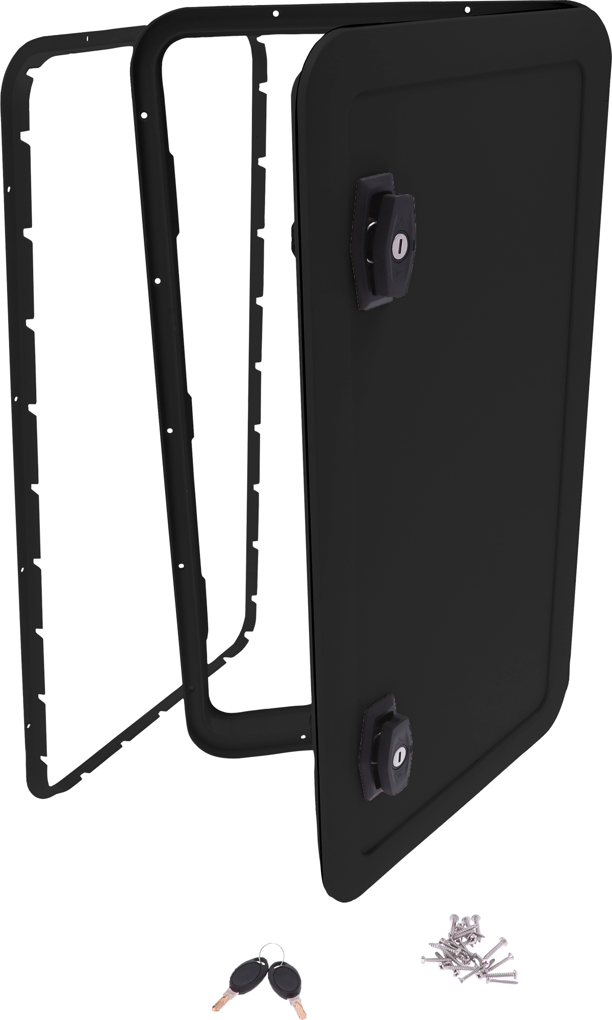 Berger Serviceklappe – für universellen Einsatz Die Serviceklappen sind für alle gängigen Wandstärken im Campingbereich geeignet, dadurch sind sie universell einsetzbar, beispielsweise als Toilettentanktür oder als Tür für kleine Fächer oder Abteile. Details: * Kompatibel mit Wandstärken von 26–46 mm * Hochfeste Aluminium-Sandwichplatte als Grundplatte * UV-beständiges Material * Edelstahlwelle am Scharnier * Selbstspannendes Hebelschloss, Fahrzeug-Universalzylinder wird mitgeliefert * Maximaler Öffnungswinkel: 180° * Verwendung als Toilettentanktür oder als Tür für kleine Abteile oder Fächer Technische Daten: * Material: Acrylnitril-Styrol-Acrylat (ASA) * Maße (LxBxH): SK-L: 37,9 x 33,1 x 4,6 cm SK-XL: 67,7 x 38,3 x 4,6 cm Lieferumfang SK-L (317646, 598066): * 1 x Serviceklappe * 1 x vormontiertes Schloss inkl. Schließzylinder * 2 x Schlüssel * Montagematerial Lieferumfang SK-XL (852199, 635121): * 1 x Serviceklappe * 2 x vormontiertes Schloss inkl. Schließzylinder * 4 x Schlüssel * Montagematerial Art Scharniere, Schlösser, Beschläge: Sonstiges, Ausführung: XL, Farbe: schwarz, Gewicht: 4 kg, Maße (LxBxH): 67,7 x 38,3 x 4,6 cm, Passend für: Wandstärken von 26–46 mm