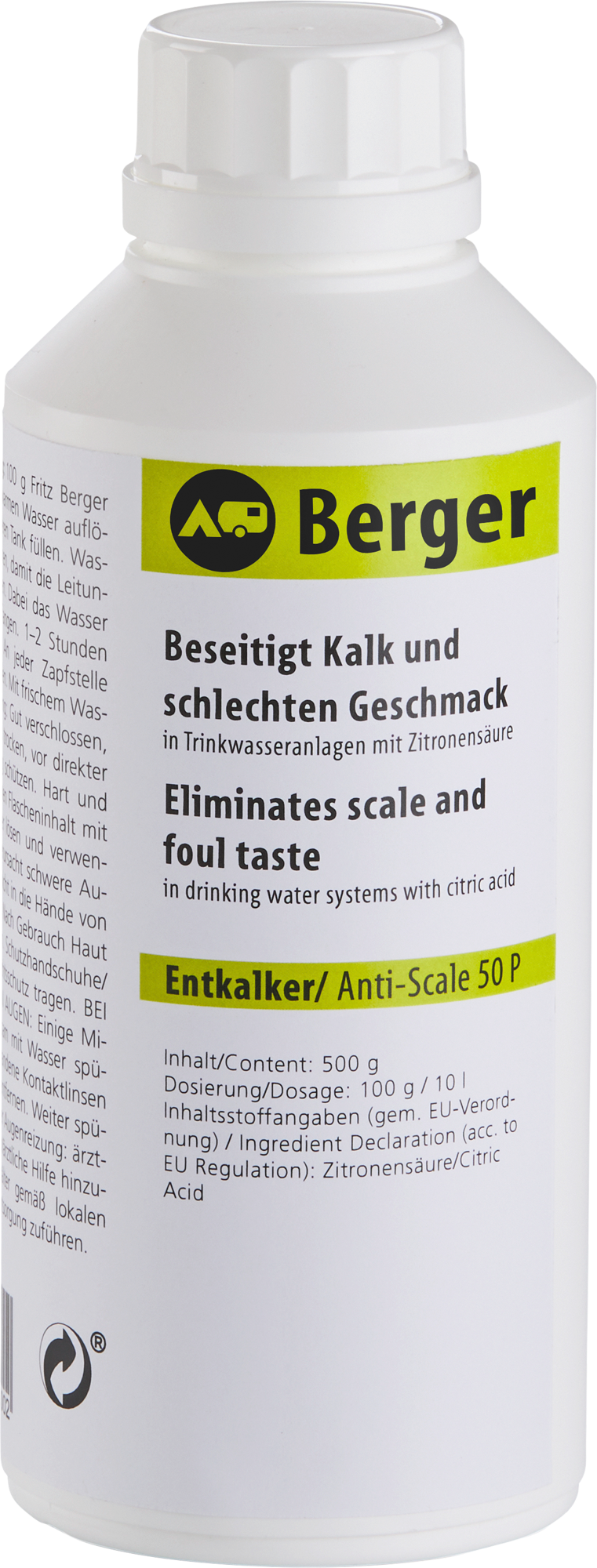 Berger Wassertankentkalker für 500 l – Wassertankentkeimung & -reinigung