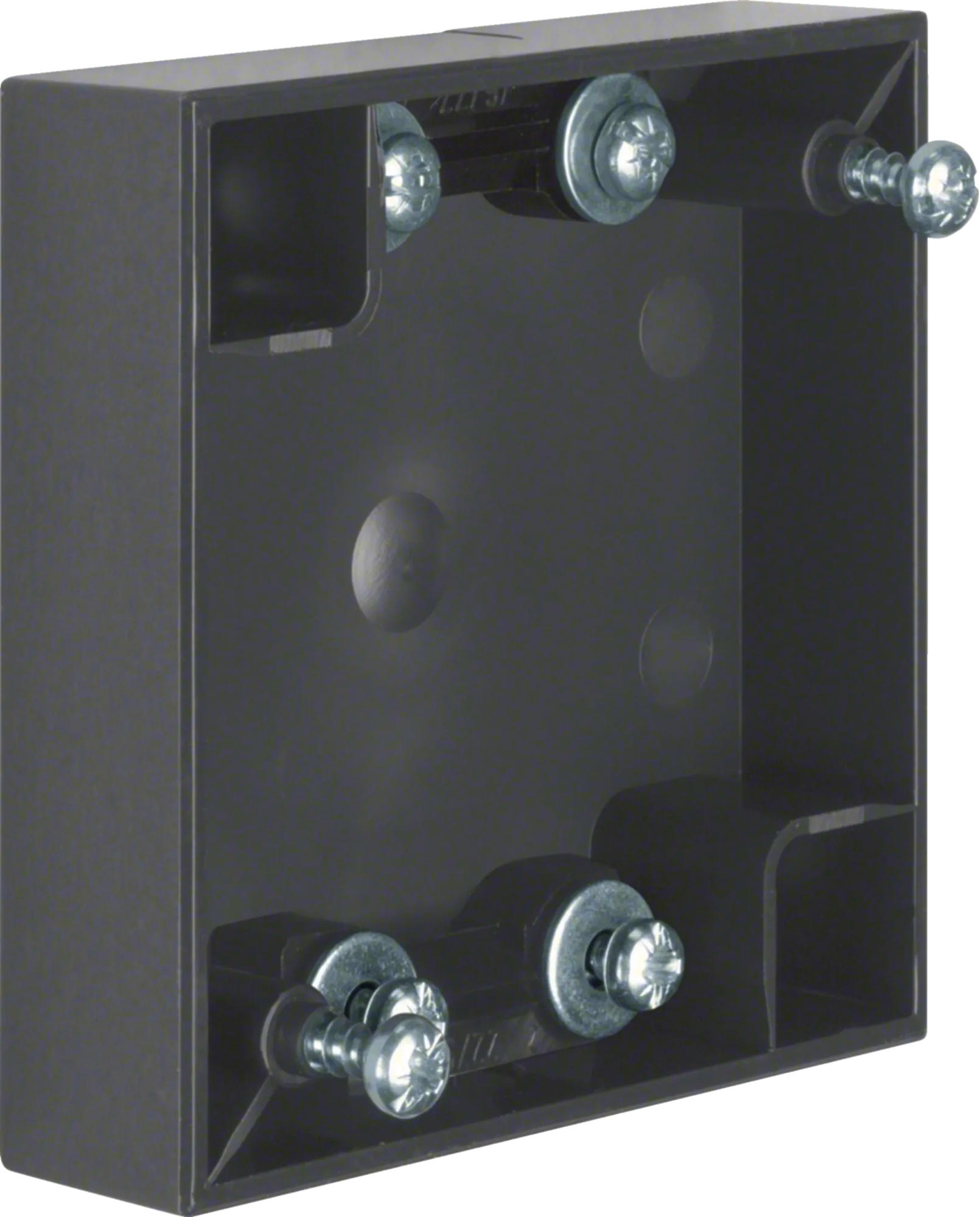 Aufbau-Gehäuse flach AP, Integro Flow Das Aufbau-Gehäuse flach AP ist für die Montage auf entflammbarem Untergrund geeignet und lässt sich sowohl horizontal als auch vertikal installieren. Es bietet eine Leitungseinführung und ist in anthrazit glänzend erhältlich. Das Gehäuse besteht aus Thermoplast (TP) und ist halogenfrei. Details * Geeignet für Montage auf entflammbarem Untergrund * Aufbau-Montage * Halogenfrei * Zugehörige Serien: Flow * Variante mit oder ohne Zugentlastung verfügbar Technische Daten * Anzahl Module: 0 * Höhe: 59,50 mm * Breite: 59,50 mm * Tiefe: 16 mm * Farbe: Anthrazit (RAL 7021) * Glanzgrad: Glänzend * Material: Thermoplast (TP) * Kabeleinführung: Ja * IP-Klasse: IP20 Lieferumfang * Aufbau-Gehäuse flach AP, Integro Flow Art Kabel, Kupplung, Schalter und Stecker: Sonstiges, Ausführung: Mit 2 Zugentlastungen, Farbe: Anthrazit glänzend, Maße (BxHxT): 59,5 x 59 x 16 mm