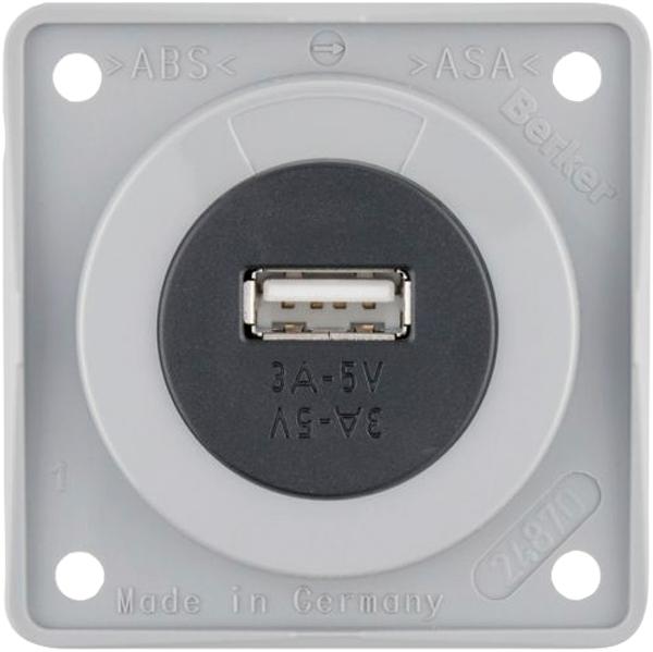 Berker Integro USB-Ladestecker 3 A 5 V Grau glänzend – 12 / 24 V Einbausteckdosen