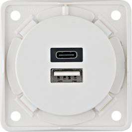 USB Ladesteckdose A+C 230 V USB Ladesteckdose A+C 230 V zum Laden mobiler Endgeräte, wie z.B. Tablets, Smartphones, Navigationsgeräte und Digitalkameras über USB Kabel. Durch eine elektronische Sicherung ist sie kurzschlussfest und überlastsicher. Technische Daten: * Eingangsspannung: 230 V * Frequenz: 50/60 Hz * Ausgangsspannung: 5 V * Ausgangsstrom je Buchse: max. 3 A * Ausgangsstrom bei Betrieb beider Buchsen (gesamt): max. 3 A * Leistungsaufnahme (Standby): max. 150 mW * Leiterquerschnitt (massiv): max. 2,5 mm² * Einbautiefe: 31 mm * mit einer USB Buchse Typ A und einer USB Buchse Typ C Art Kabel, Kupplung, Schalter und Stecker: Steckdose, Ausführung: USB Ladesteckdose A+C 230 V, Farbe: weiß