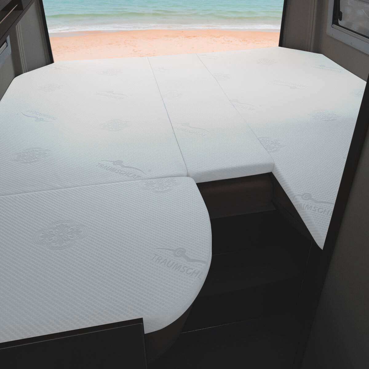 Traumschlaf Premium Gelschaum Topper – Komfortabler Schlaf auf Reisen Mit dem Traumschlaf Premium Gelschaum Topper schläfst Du unterwegs genauso erholsam wie zu Hause. Der Gel-Memory-Schaum passt sich optimal Deiner Körperform an, entlastet die Druckpunkte und sorgt für eine angenehme Temperaturregulierung. Dank abnehmbarem, waschbarem Bezug bleibt der Topper hygienisch und pflegeleicht – ideal für Allergiker und alle, die auf Reisen nicht auf hohen Schlafkomfort verzichten möchten. Details: * Erhältlich in 8 Varianten: * Malibu Van 640 ab Modelljahr 22/23, 2-teilig oder 4-teilig * Hymer MLT 580, 5-teilig * Ford Nugget Kastenwagen, einteilig * Pössl Summit 540, einteilig oder 5-teilig * Pössl Summit 640, einteilig oder 4-teilig * Gel-Memory-Schaum für individuelle Druckentlastung * Sehr gute Temperaturregulierung * Hoher Schlafkomfort auch auf Reisen * Atmungsaktiv und allergikergeeignet * Bezug mit rundum Reißverschluss, abnehmbar und waschbar bei 40 °C * Schadstoffgeprüfte Textilien nach Öko Tex Standard 100 Technische Daten: * Material Kern: Gel-Memory-Schaum * Material Bezug: 63 % Polyester (Polyester), 37 % Viskose (Viskose) Lieferumfang: * Traumschlaf Premium Gelschaum Topper in gewählter Ausführung Farbe: weiß, Ausführung: 4-teiliges Set, Passend für: Pössl Summit 640