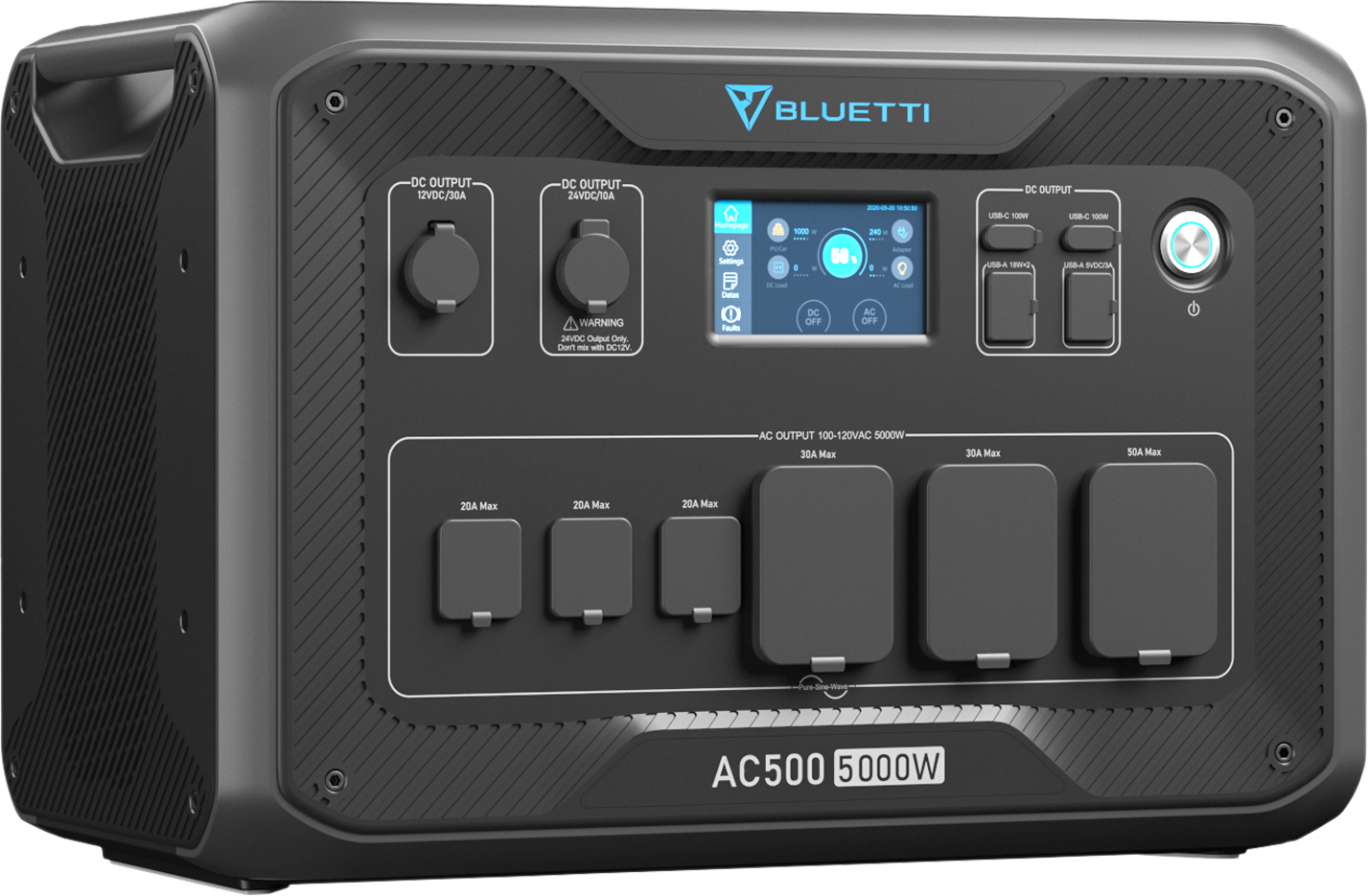 Bluetti AC500: Modulare Power für maximale Energie Mit dem Bluetti AC500 Wechselrichter versorgst Du Dein Zuhause, Dein Wohnmobil oder Deine Werkstatt flexibel und zuverlässig mit Strom. Der 5.000-W-Wechselrichter mit 10.000 W Spitzenleistung ist für nahezu alle Geräte geeignet. Du kannst ihn mit bis zu 6 B300S- oder 4 B300-Batterien kombinieren und so eine Kapazität von bis zu 18.432 Wh erreichen. Dank MPPT-Technologie sind bis zu 3.000 W Solarstrom möglich – oder 8.000 W bei kombiniertem Laden. Das System lässt sich bequem per App oder Touchscreen steuern und funktioniert auch als unterbrechungsfreie Stromversorgung. Details: * 5.000 W Nennleistung (10.000 W Überspannung) * Erweiterbare Kapazität von 3.072 bis 18.432 Wh (nur mit B300/B300S-Akkus nutzbar) * 16 vielseitige Anschlüsse für 99 % aller Geräte * Kompatibel mit Solar-, Netz-, Auto- und Generatorstrom * App-Steuerung per Bluetooth oder WLAN * USV-Funktion für Notstromversorgung * Gleichzeitiges Laden und Entladen möglich Technische Daten: * AC-Ausgänge: 5 × 230 V / 16 A, 1 × 230 V / 32 A, gesamt 5.000 W * Wechselrichter: Reine Sinuswelle, 10.000 W Überspannungsleistung * USB-C: 2 × 100 W max. * USB-A: 2 × 5 V / 3 A, 2 × 18 W * 12 V DC: 1 × 12 V / 30 A (Wohnmobil), 1 × 24 V / 10 A (Fahrzeug) * Kabelloses Laden: 2 × 15 W max. * AC-Eingang: 4.500 W (mit 1×B300S), 5.000 W (mit 2+ B300S) * Solar-Eingang: max. 3.000 W, 12–150 VDC, 15 A * Auto-Eingang: 12/24 V über Zigarettenanzünder * Maximale Ladeleistung: 8.000 W (AC + Solar, ab 2 B300S) * Betriebstemperatur: -20 bis 40 °C * Lagertemperatur: -20 bis 40 °C Lieferumfang: * 1 × Bluetti AC500 Wechselrichter * 1 × AC-Ladekabel * 1 × Auto-Ladekabel * 1 × Solar-Ladekabel * 1 × Benutzerhandbuch * 1 × Qualitätszertifikat * 1 × Garantiekarte Hinweis: Der Betrieb ist nur in Kombination mit mindestens einer B300S- oder B300-Batterie möglich. Akku nicht im Lieferumfang enthalten. App-Steuerung: Ja, Art Batterien und Ladegeräte: Powerstation, Dauerleistung: 5000 W, Kapazität (Ah): 3072 Wh, Leistung (W): 5000 W, Mehrwertsteuer: 19 % MwSt., Leistung: 5000 W