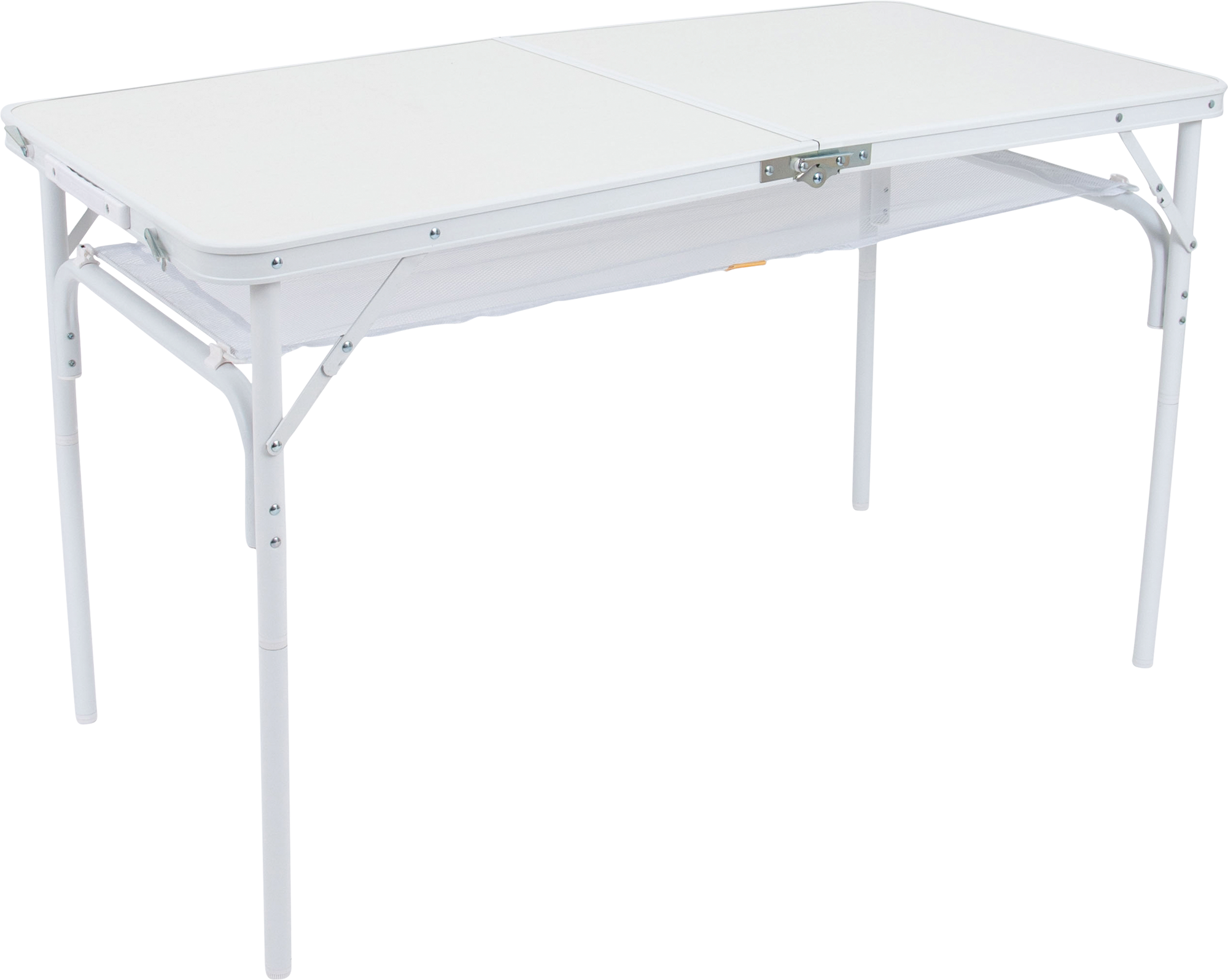 Innovativer Koffermodell-Campingtisch aus der Pastel Kollektion mit stabiler Tischplatte. Der sehr stabile Tisch hat abnehmbare Beine und die Tischplatte kann in der Mitte zusammengeklappt werden. Dadurch lässt sich der Tisch leicht in einen praktischen und sehr kompakten Koffer mit Tragegriff umwandeln. Elegantes Design im Pastell-Look mit hellem Aluminium-Gestell und robuster MDF-Tischplatte. Die Beine sind 2-fach höhenverstellbar (36/70 cm). Dank der verstellbaren Fußkappen hat der Tisch einen extra stabilen Stand. Unterhalb der Tischplatte ist ein praktisches Netz zur Aufbewahrung von Gegenständen angebracht. Details * Innovativer Aluminium-Campingtisch aus der Pastel Kollektion mit stabiler MDF-Tischplatte * Koffermodell: Einfach in kompakten Koffer mit Tragegriff umwandelbar * Verstellbare Fußkappen für extra stabilen Stand * Höhenverstellbar (36/70 cm) * Mit praktischem Netz unterhalb der Tischplatte zur Aufbewahrung von Gegenständen * Zusammengeklappt (LxBxH): 60x45x7 cm * Produktbreite: 60 cm * Produktlänge: 120 cm Höhenverstellbar: Ja, Netzablage: Ja, Belastbar bis: 20 kg, Höhe Tisch: 36/70 cm, Material Platte: mitteldichte Holzfaserplatte, Gewicht: 5,2 kg, Tischfläche (LxB): 120 x 60 cm, Breite Packmaß: 60 cm, Höhe Packmaß: 7 cm, Länge Packmaß: 60 cm