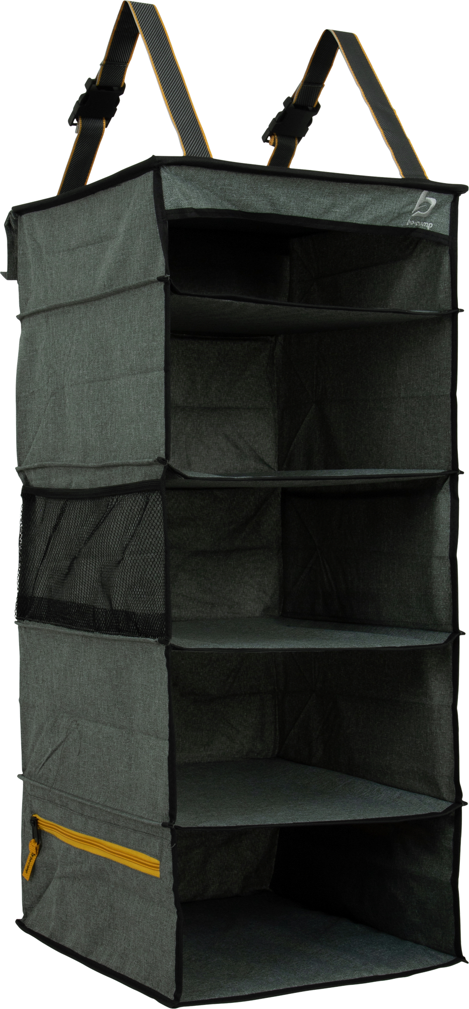 Ein faltbarer Hängeschrank mit 5 Fächern aus der Industrial Kollektion. Hat 5 Fächer, wo optional eine Schublade eingefügt werden kann (nicht im Lieferumfang enthalten). Mit 2 seitlichen Netztaschen und 2 seitlichen Reißverschlusstaschen. Einfach zu befestigen mit einem Klettverschluss oder Gurt an einer Zeltstange. Hergestellt aus extra starkem kationischem Material. Details * Multifunktionaler und stilvoller Organizer mit 5 Fächern. * Ideal für den Einsatz im Zelt oder im Wohnwagen. * Mit 5 geräumigen Fächern und 4 kleinen Seitentaschen. * Einfach mit den Riemen zu befestigen. Gewicht: 2 kg, Material Bezug: Cationic, Farbe: Grün, Maße offen (BxHxT): 35 x 35 x 80 cm