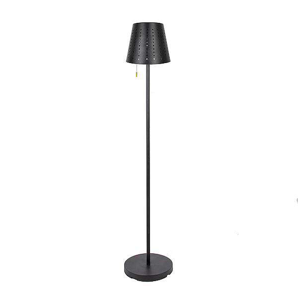 Eine stimmungsvolle Solar-Tischlampe im Industrie-Look. Verleiht ein angenehmes Licht durch die warmweiße LED-Beleuchtung mit 3 Lichtmodi (25%/50%/100%). Mit Solarpanel auf der Oberseite des Lampenlagers und aus stabilem Stahl gefertigt. Der eingebaute Li-Ion-Akku kann mit Solarenergie oder dem mitgelieferten USB-Kabel aufgeladen werden. Ausgestattet mit einem Timer von 4 Stunden. Inklusive Fernbedienung. Details * Strahlt angenehmes Licht durch warme Farbe aus * Stylische Stahllampe mit industriellem Design * Atmosphärische Solarlampe im Industrie-Look mit Fernbedienung. * Warmweiße LED-Beleuchtung mit 3 Lichtmodi * Mit Solarpanel und aus stabilem Stahl Art Leuchten elektrisch: Stehlampe, Farbe: schwarz, Gewicht: 6,4 kg, Ladefunktion: USB-Anschluss/ Solarenergie, Leuchtdauer: 4 Stunden, Durchmesser: 30 cm, Material Gehäuse: Stahl, Maße (LxBxH): 30 x 30 x 150 cm