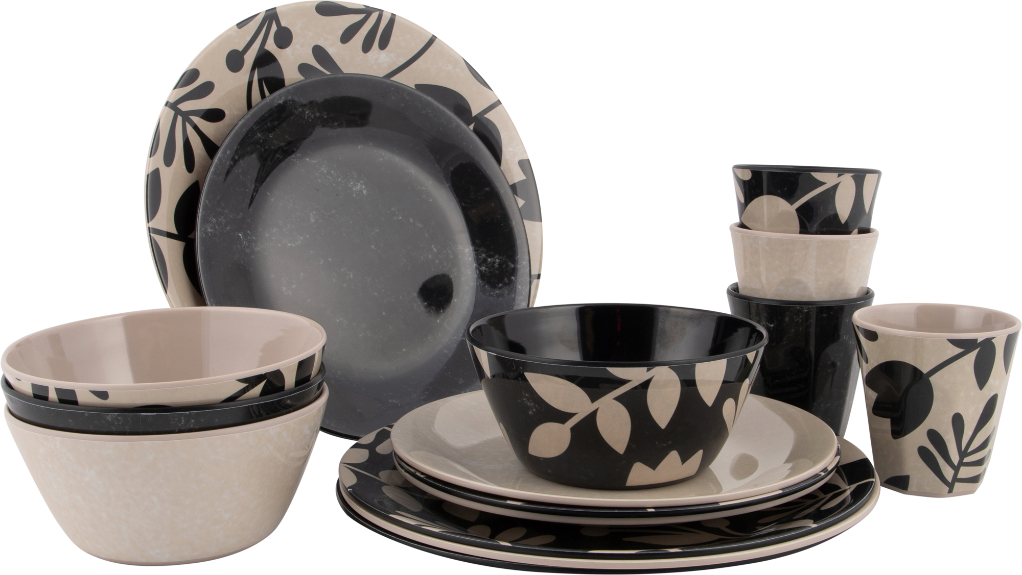 Bo-Camp Mix & Match Geschirr-Set 16-tlg. beige/schwarz – Kunststoff und Melamin Geschirr-Sets