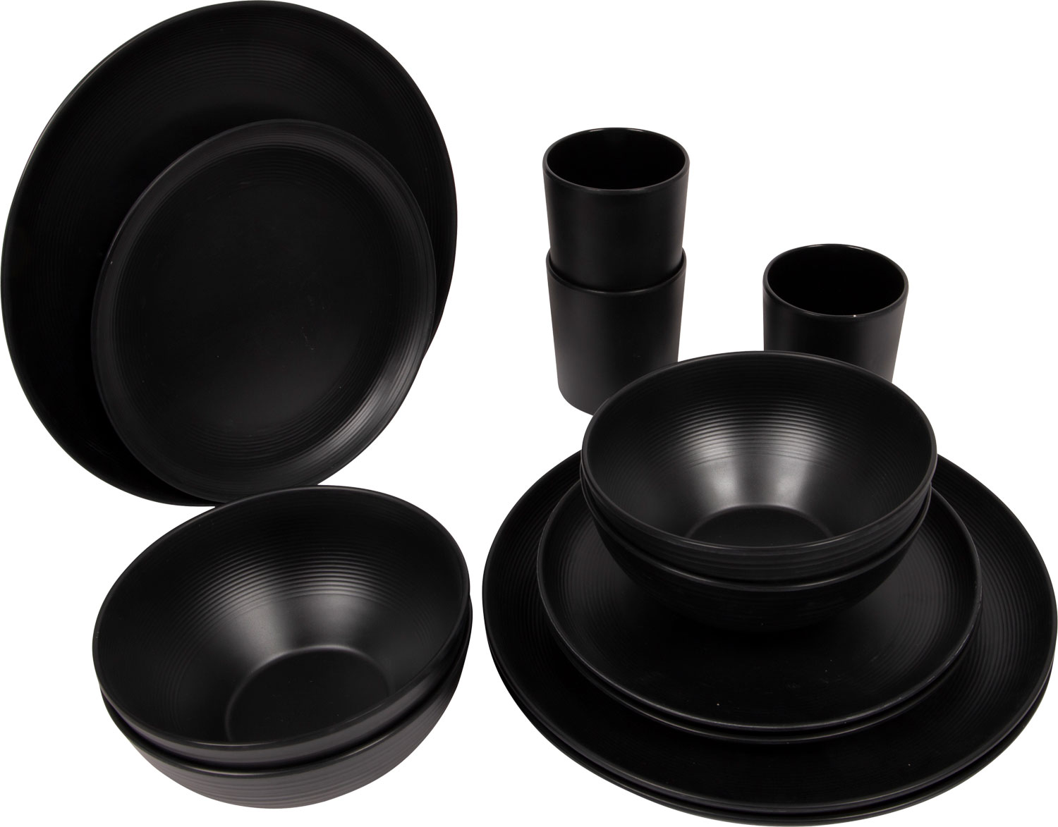Bo-Camp Orville Geschirr-Set 16-tlg. schwarz für 4 Personen – Kunststoff und Melamin Geschirr-Sets