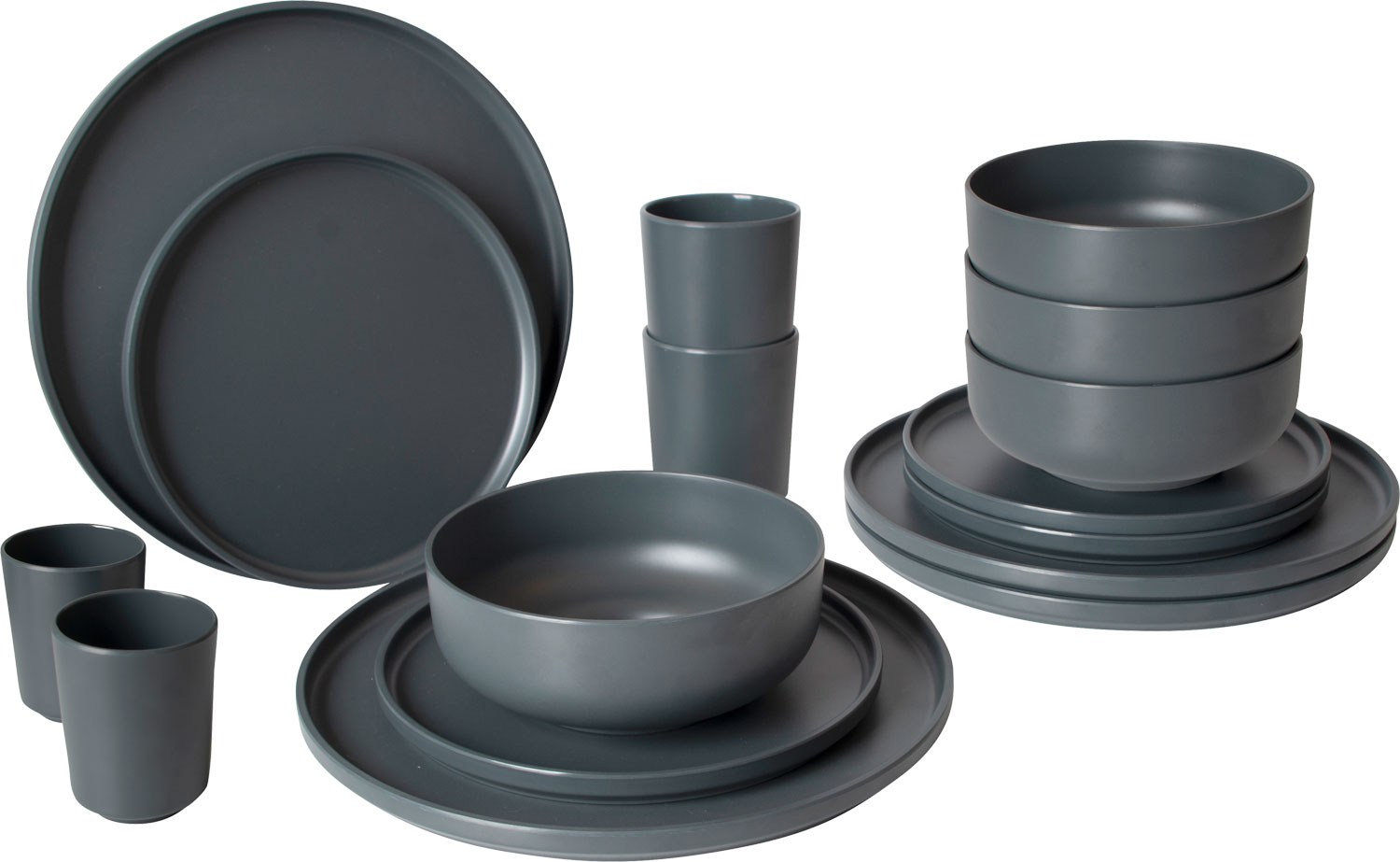 Bo-Camp Patom Geschirr-Set 16-tlg. schwarz für 4 Personen – Kunststoff und Melamin Geschirr-Sets