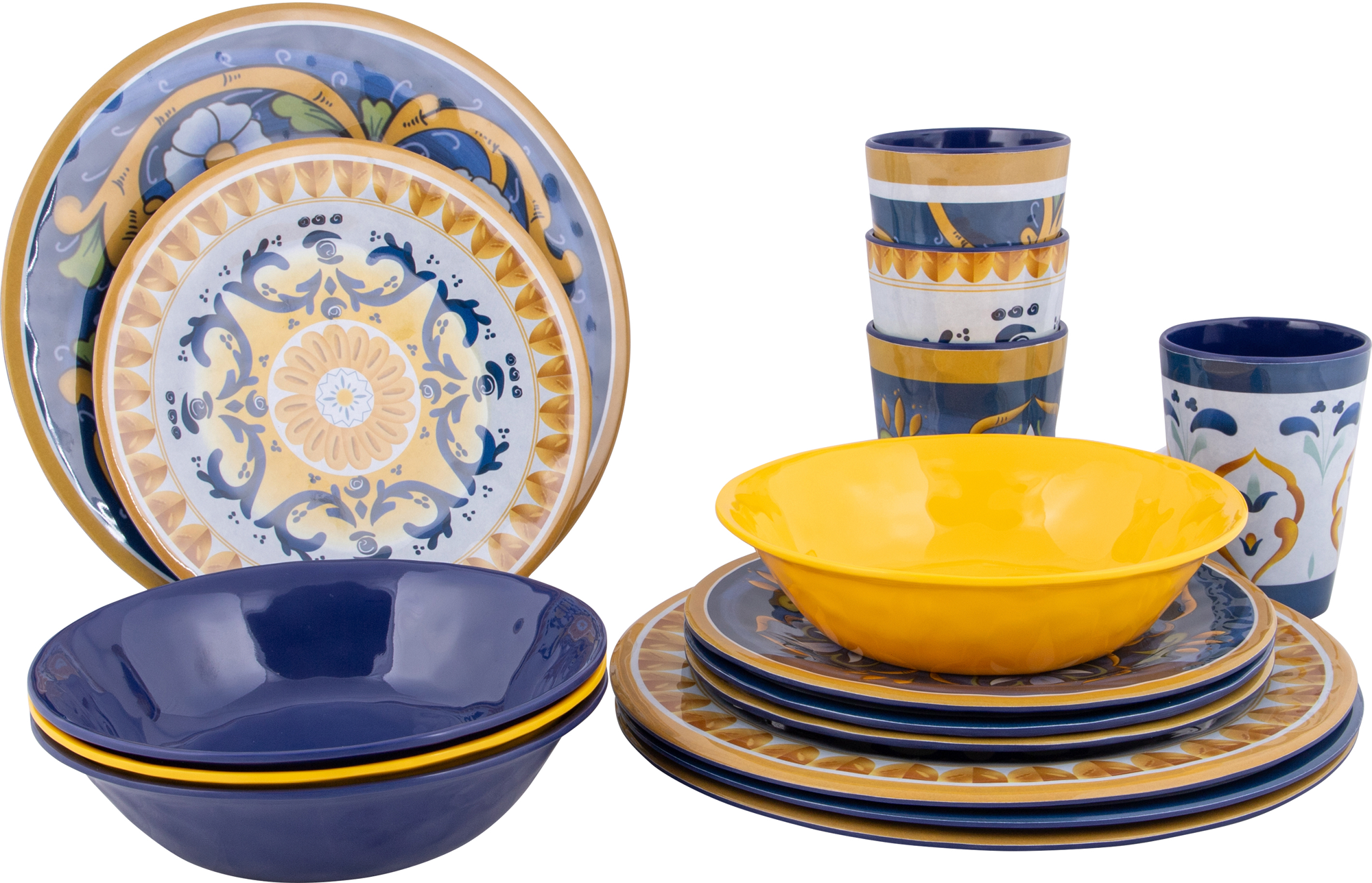 Bo-Camp Sicilian Geschirrset 16 teilig – Kunststoff und Melamin Geschirr-Sets