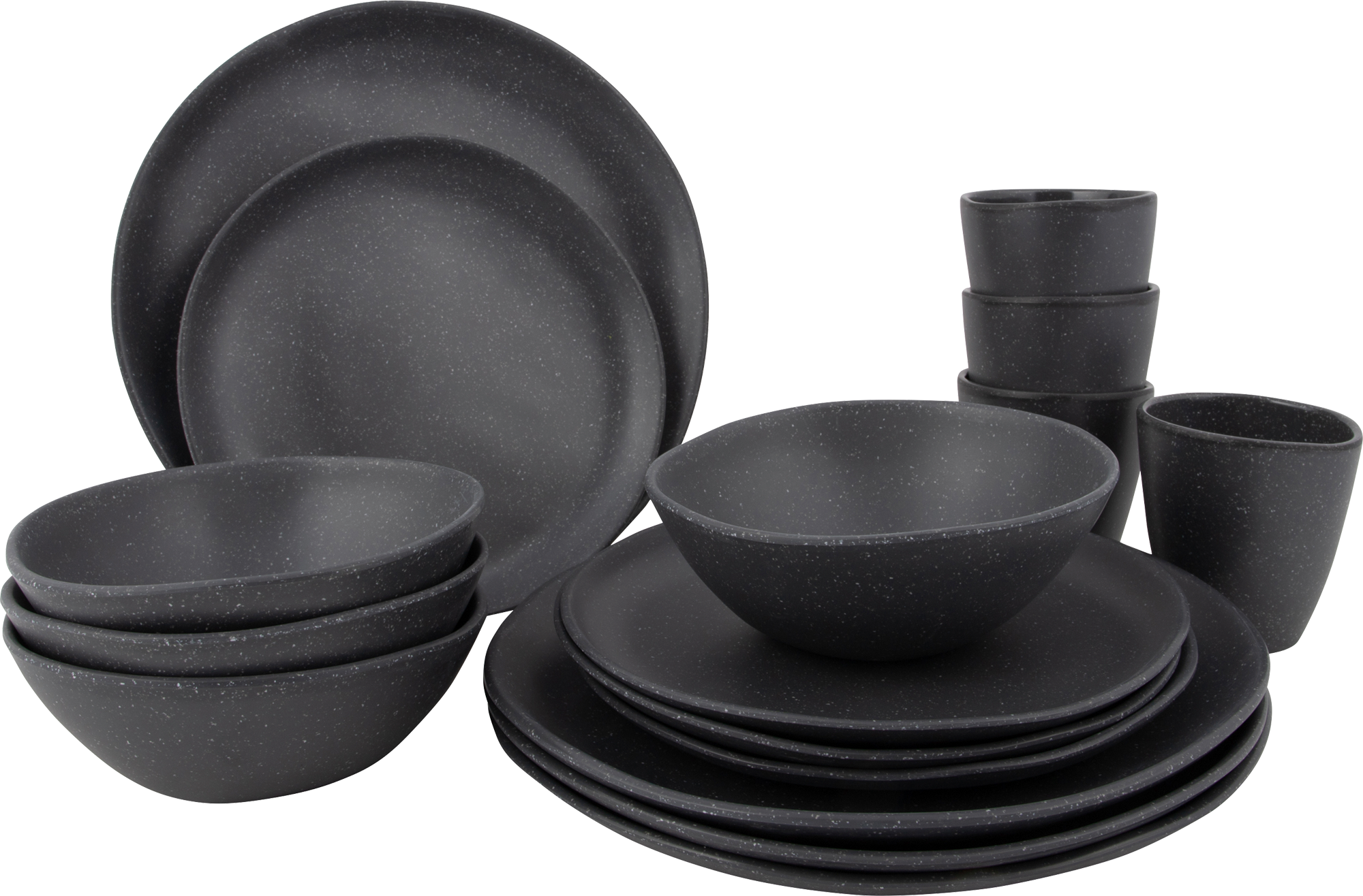 Bo-Camp Urban Outdoor Collection Hoxton Geschirrset Melamin 16 teilig für 4 Personen grau – Kunststoff und Melamin Geschirr-Sets