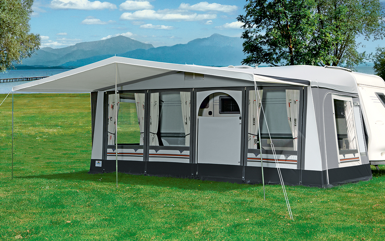 Das Sonnendach für Brand-Vorzelte – schnell einsatzbereit! Dises Universal Vorzelt-Sonnendach Solair können Sie in wenigen Minuten aufbauen. Bei starkem Wind und Regen oder während Ihrer Abwesenheit ist es schnell unter dem Vordach verstaut (siehe Kleinabbildungen). Das Brand Solair Sonnenvordach ist eine ideale Ergänzung Ihrer Campingausrüstung. Passend für fast alle Brand-Ganzeinzugszelte. Die ideale Gestängekonstruktion bietet zahlreiche Vorteile: passend an alle Brand-Ganzeinzugszelte mit Giebel und Vordach der Zeltgrößen 08 – 14 schneller und problemloser Aufbau durch eine sinnvolle Gestängeausstattung. Spezialadapter und Giebelstangen sorgen für eine optimale Passform, geben den notwendigen Halt auch zum Vorzelt. Vorzelt und Sonnendach bilden eine kompakte Einheit. einmal am Zelt fixiert, ist ein Abbau nicht nötig. Bei widrigen Witterungsverhältnissen wird das Sonnendach durch zwei Personen einfach aufgerollt. verstaut unter dem Vordach des Vorzeltes ist das Sonnendach vor Wind und Regen geschützt. Dachtiefe: ca. 240 cm. Serienmäßige Ausstattung: – Abspannseile und Heringe – Hakenstange zur Nutzung als Wohnwagensonnendach (nur mit eingeschränkter Passform!). Art Markisen und Dächer: Vordach und Sonnensegel, Art Sonnensegel/Vordächer: Sonnensegel, Art Wohnwagenvorzelte: Zubehör, Gestänge: Stahl Ø 22 x 1 mm, Material: TC, Vordach: Ja, Farbe: weiß, Gewicht: 15,4 kg, Umlaufmaß: 939 – 958 cm, Tiefe: 240 cm