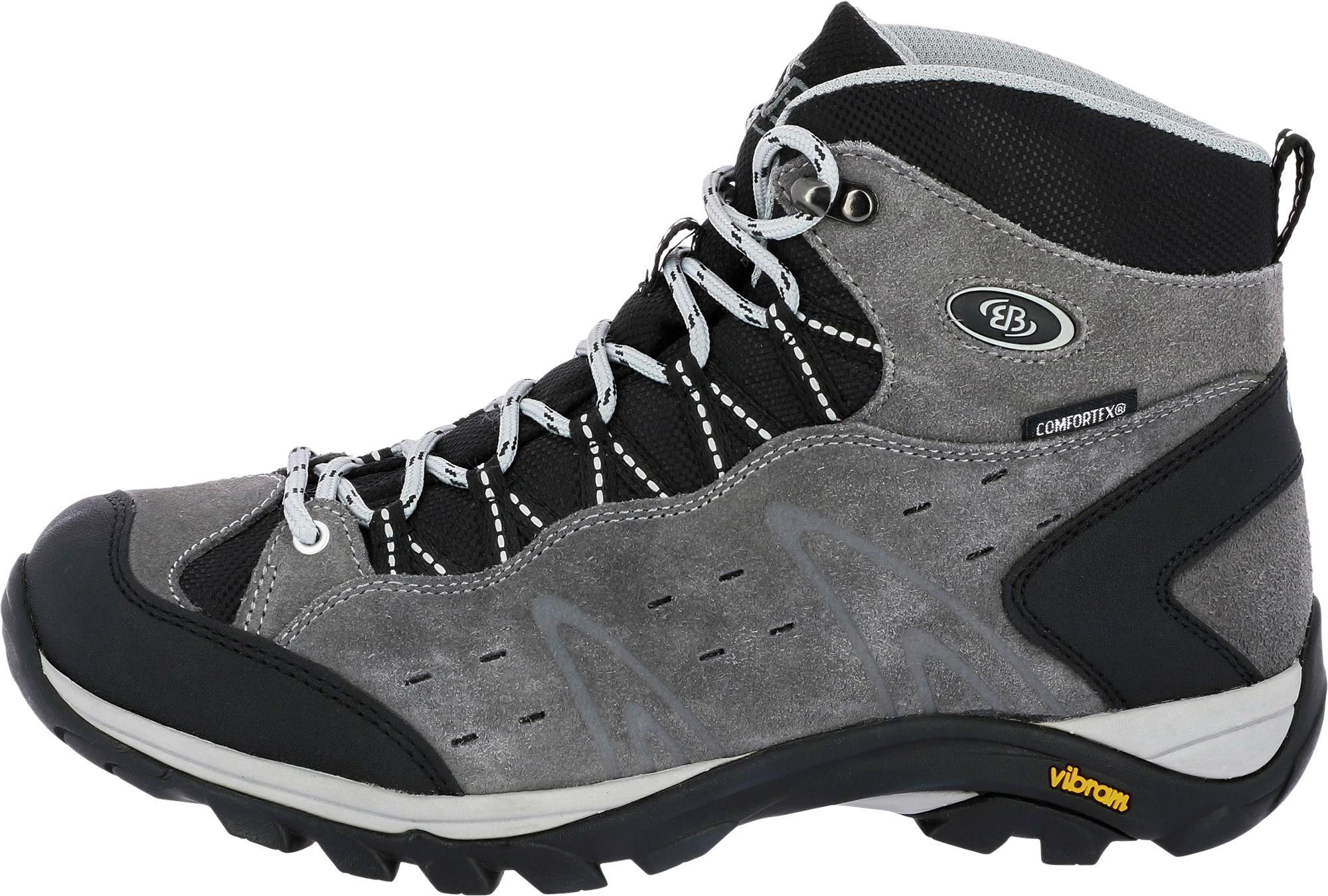 Funktioneller Trekkingstiefel von Brütting – der Mount Bona High. Dieser robuste Outdoorschuh aus Veloursleder ist eine wahre Wohltat für die Füße und begleitet Sie zuverlässig bei Ihren Outdoor-Aktivitäten. Die praktische Schnürung kann für die ideale Anpassung an den Fuß individuell reguliert werden. Damit auch auf unebenem Untergrund für den nötigen Halt gesorgt ist, verfügt der Schuh außerdem über eine Laufsohle aus Gummi. Details: Obermaterial aus Veloursleder mit Nylon-Einsätzen, wasserdichte und atmungsaktiv Comfortex-Klimamembrane, auswechselbare Textileinlegesohle, stabile und rutschfeste Vibram-Laufsohle, angenehme Schaft- und Laschenpolsterung. Art Schuhe: Wanderstiefel, Geschlecht: Herren, Material: Veloursleder mit Nylon-Einsätzen, Atmungsaktiv: Ja, Wasserdicht: Ja, Farbe: grau, Größe: 46