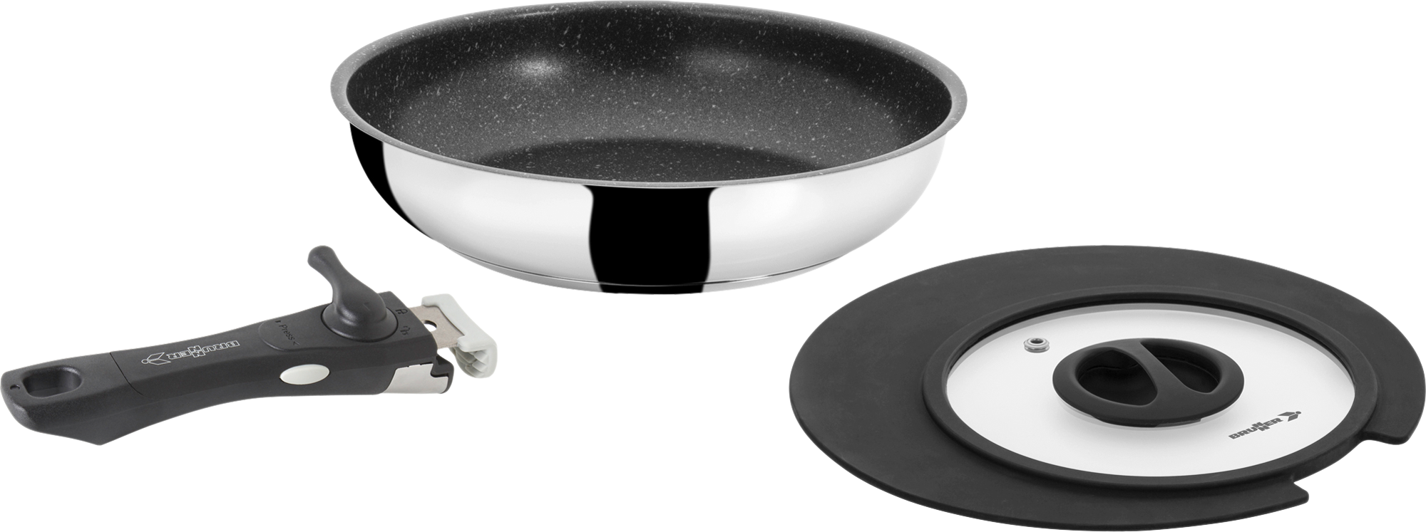 Die hochwertige Academy Pan Kochpfanne von Brunner. Details * Gewicht: 2,18 kg * Durchmesser Pfanne und Topf: Ø 22 cm * 1x abnehmbarer Griff * Edelstahl Gewicht: 2,18 kg, Antihaftbeschichtung: Ja, Anzahl abnehmbare Griffe: 1, Anzahl Deckel: 1, Anzahl Pfannen: 1, Durchmesser Deckel: 22 cm, Durchmesser Pfanne: 22 cm, Griffart: abnehmbar, Material: Edelstahl