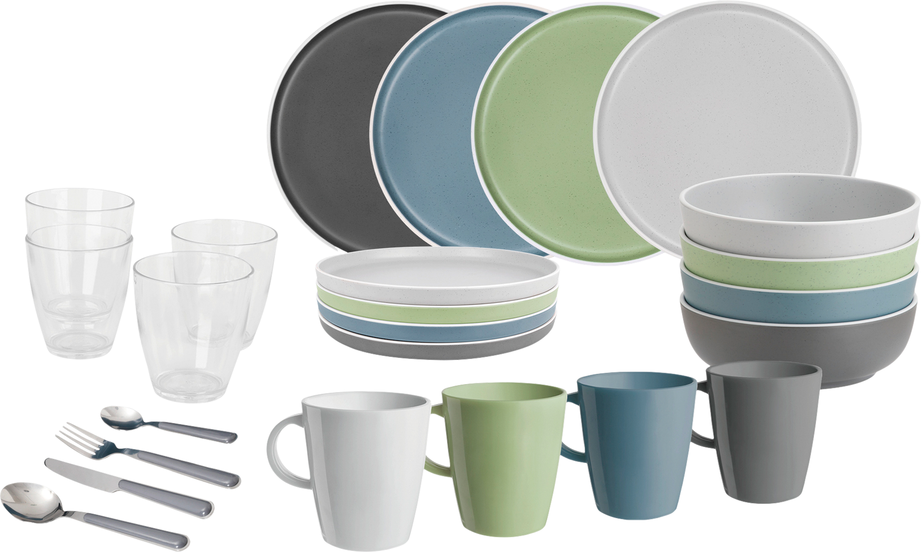 Brunner All Inclusive Dolomit buntes Melamingeschirrset 36 teilig 4 Personen – Kunststoff und Melamin Geschirr-Sets