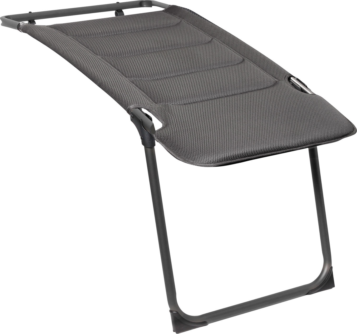Klappbare, universelle Beinauflage für Klappstühle Aravel 3D (S-M-L). Eigenschaften: • Aluminium-Gestell • Bezugsstoff: Atmungsaktives, gepolstertes 3D-Gewebe • Kompakt und leicht zu transportierendes Packmaß Art Sitzmöbel: Beinauflage, Material Bezug: 100 % Polyester, Farbe: Grau, Gewicht: 1,1 kg, Maße offen (BxHxT): 43 x 47 x 95 cm, Packmaß (LxBxH): 95 x 43 x 7 cm, Material Gestell: Aluminium