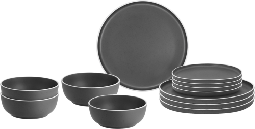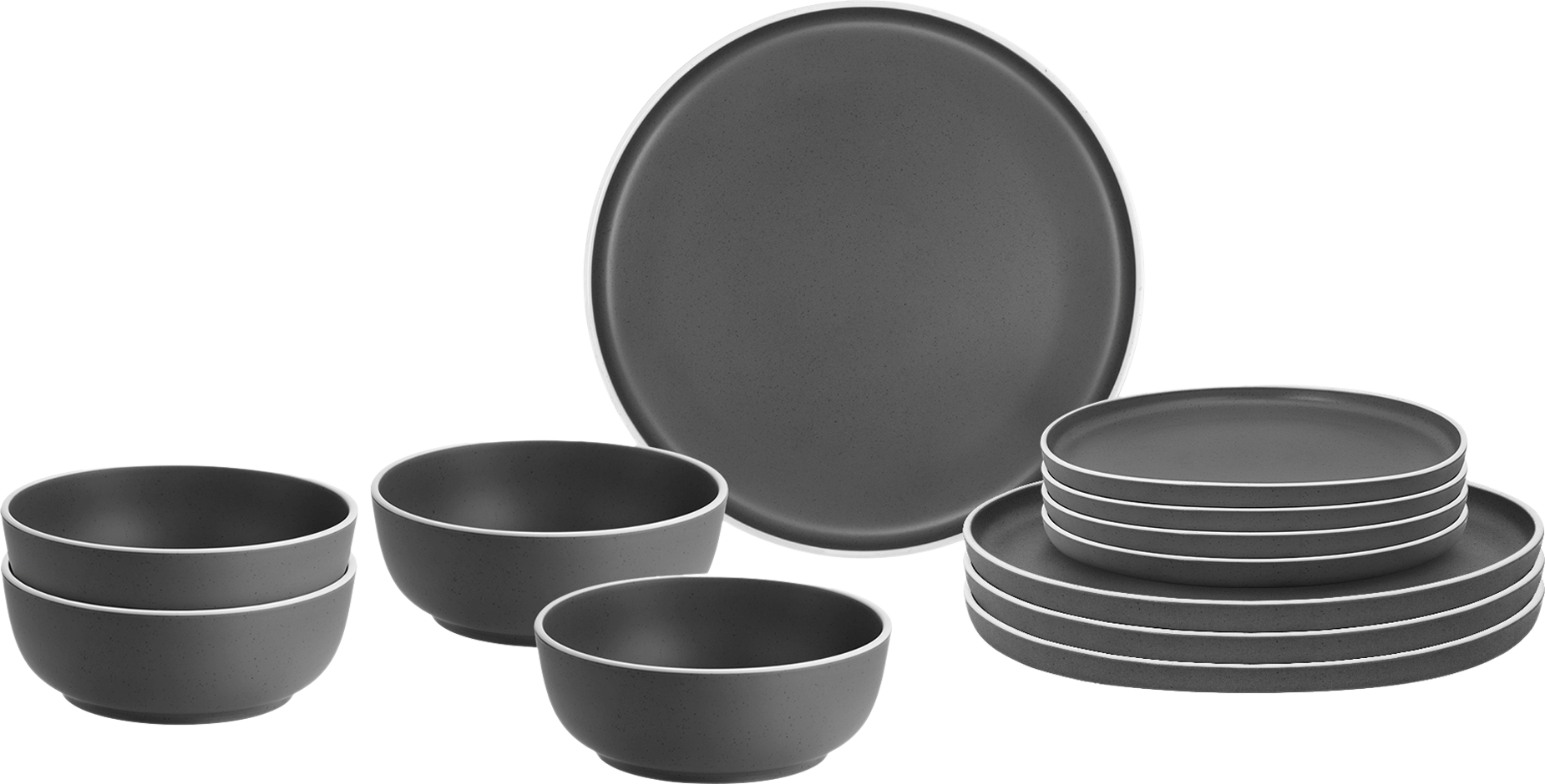 Brunner Dolomit Geschirr-Set 12-tlg. grau für 4 Personen – Kunststoff und Melamin Geschirr-Sets