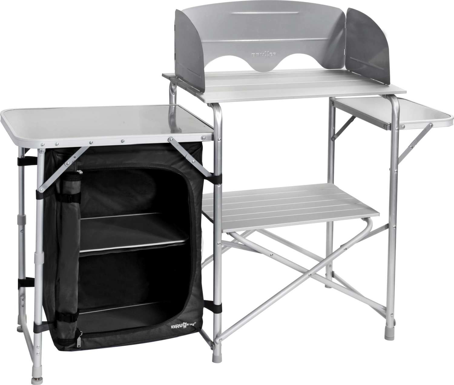 Sehr praktische Kombination aus Feldküche und Geschirrschrank. Details * Aluminium Ø 19/22 mm * Seitliche Ablage aus MDF (mitteldichte Faserplatte) mit Alurand * Vorratsschrank aus 100% Polyester mit internen MDF-Ablagen * Leicht klappbar * Inklusive Transporttasche * Maßen offen 141 x 50 x H80,5 cm * Maße geschlossen 80 x 51 x 12 cm * Gewebe: 100% Polyester Art Campingschränke: Küchenbox, Gewicht: 7,8 kg