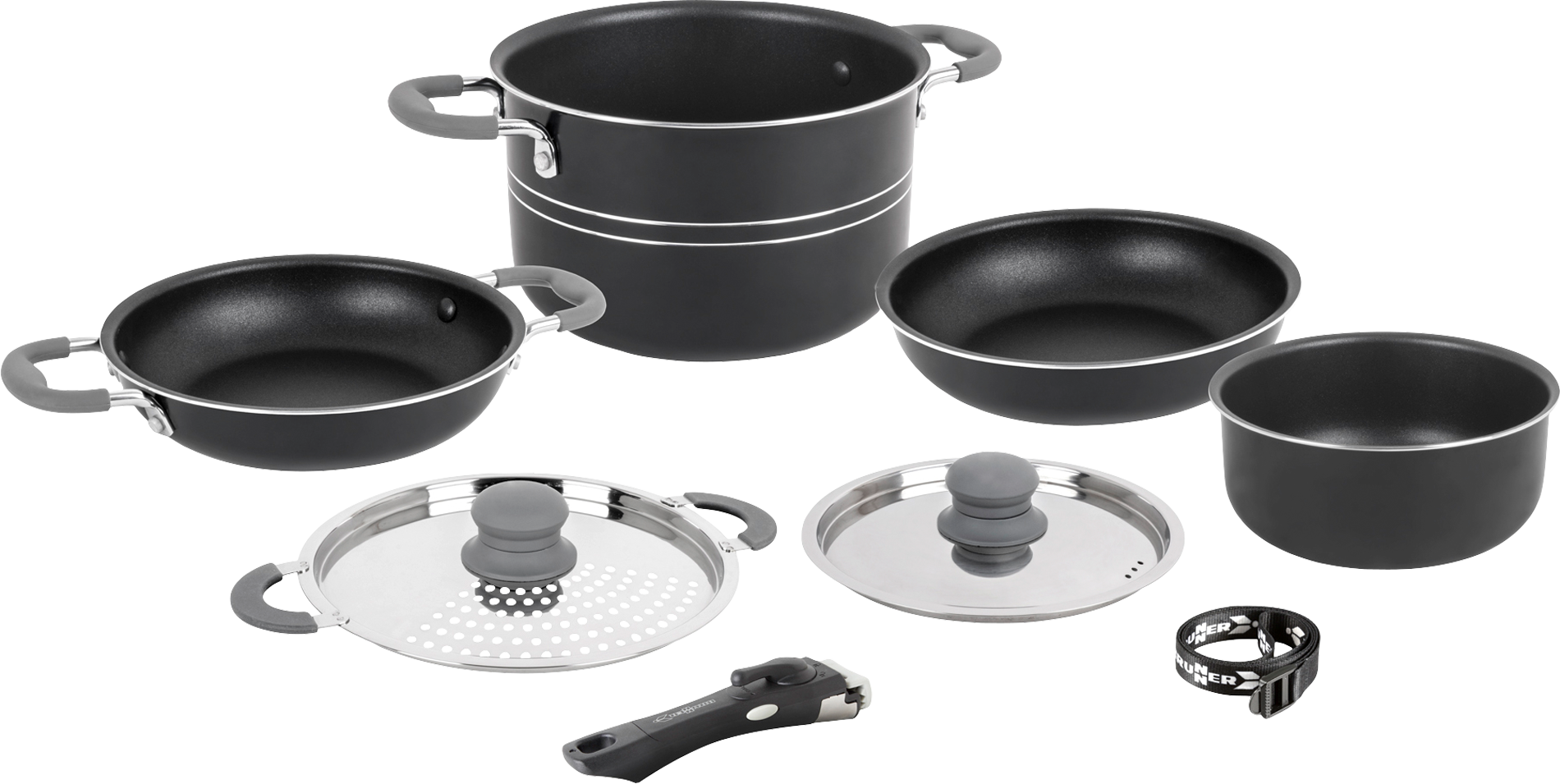 Brunner Topfset Flavor 7+1 teilig inklusive Befestigungsgurt Ø 20 cm – Kochgeschirr-Sets