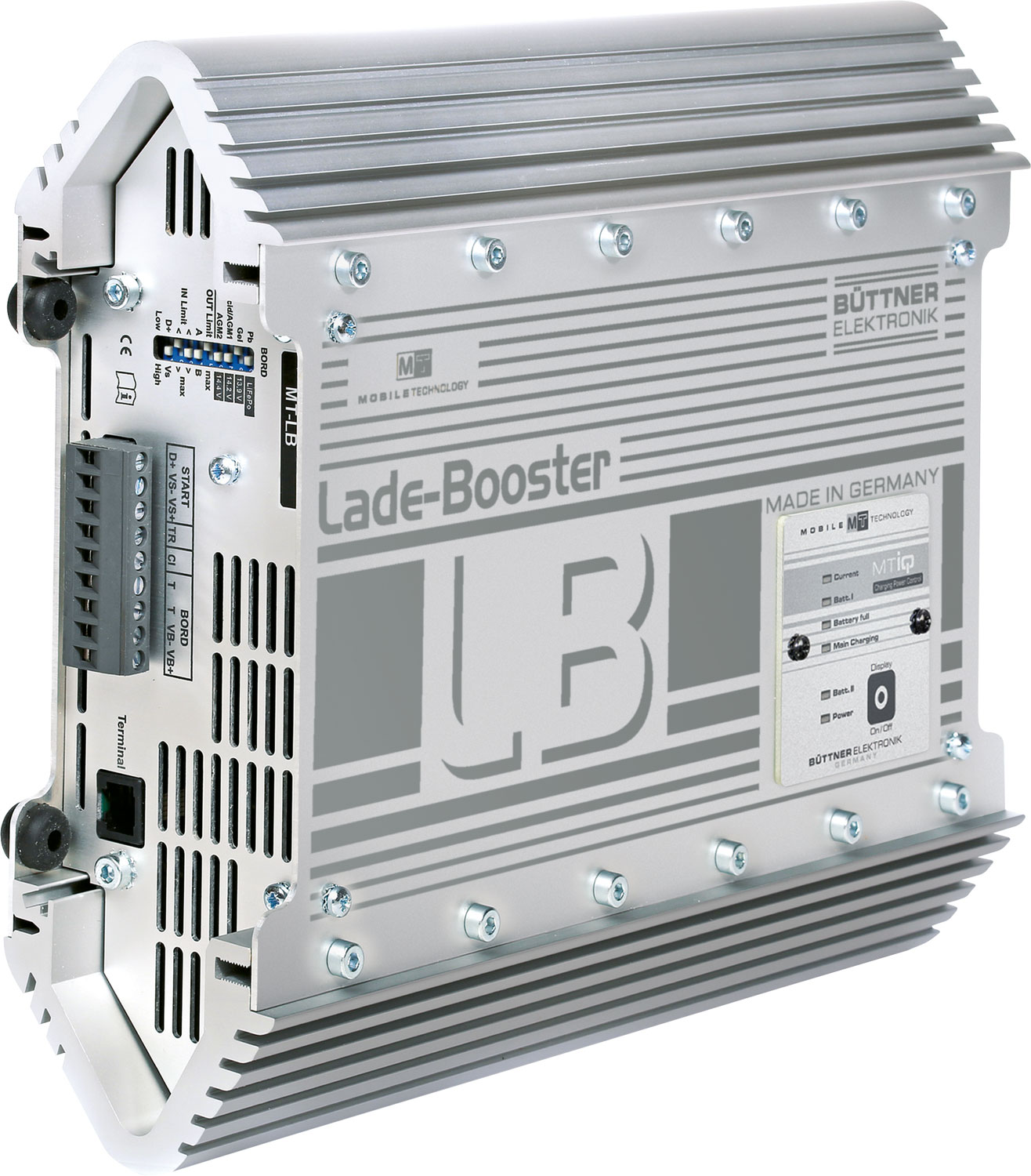 Optimale Ladung auch bei kurzen Fahrstrecken. Endlich ist es möglich, die optimale und schnelle Ladung auch während der Fahrt zu garantieren. Der Lade-Booster von Mobile Technology wird einfach in die Ladeleitung zur Bordbatterie geschaltet. In vier Leistungsstufen 30 A, 50 A, 90 A und 24 V 45 A erhältlich, sorgen die Geräte durch ihre IUOU-Ladekennlinie dafür, den Ladestrom von der Lichtmaschine bei Bedarf nicht nur zu erhöhen, sondern zusätzlich auch die Ladespannung auf den Wert anzuheben, der für den jeweiligen Batterietyp für eine Vollladung notwendig und von den Batterieherstellern gefordert wird. Mit modernster Ladetechnik ausgerüstet wird auch während kurzer Fahrstrecken eine hohe Ladeleistung erreicht und bei längeren Fahrten durch die IUoU-Ladung eine Vollladung garantiert und eine Überladung ausgeschlossen. Alle Geräte sind mit einem Batteriewahlschalter (Gel, AGM, Standard-Säure und LiFePO4) und einem abnehmbaren Bedienteil, das im Innenraum zur Fernüberwachung dienen kann, ausgestattet. Ausstattung * Modernste Ladetechnik für hohe Ladeleistung auch während kurzer Fahrstrecken * Bei längeren Fahrten wird durch die IUoU-Ladung eine Voll-Ladung garantiert und eine Überladung ausgeschlossen * Alle Geräte sind mit einem Batteriewahlschalter (Gel, AGM, LiFePO4, Standard-Säure) sowie einem Temperatur-Sensor für die Bordbatterie ausgestattet * Abnehmbares Bedienteil, das im Innenraum zur Fernüberwachung dienen kann Für die CO2-freie Stromerzeugung notwendig Art Batterie: Ladegerät, Art Energieumwandler: Spannungswandler, Eingangsspannung: Ausgangsspannung, Eingangsspannung: Eingangsspannung, Farbe: silber, Maße (LxBxH): 270 x 223 x 70 mm, Ladestrom: 90 A (IUoU geregelt), Max. Modulstrom: 90 A