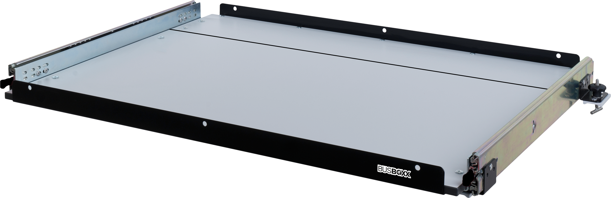 BusBoxx heckBOXX flex VW T5 / T6 / T6.1 Heckauszugs-Modul geteilt Tiefe 850 mm – Ausbauboxen & Campingboxen