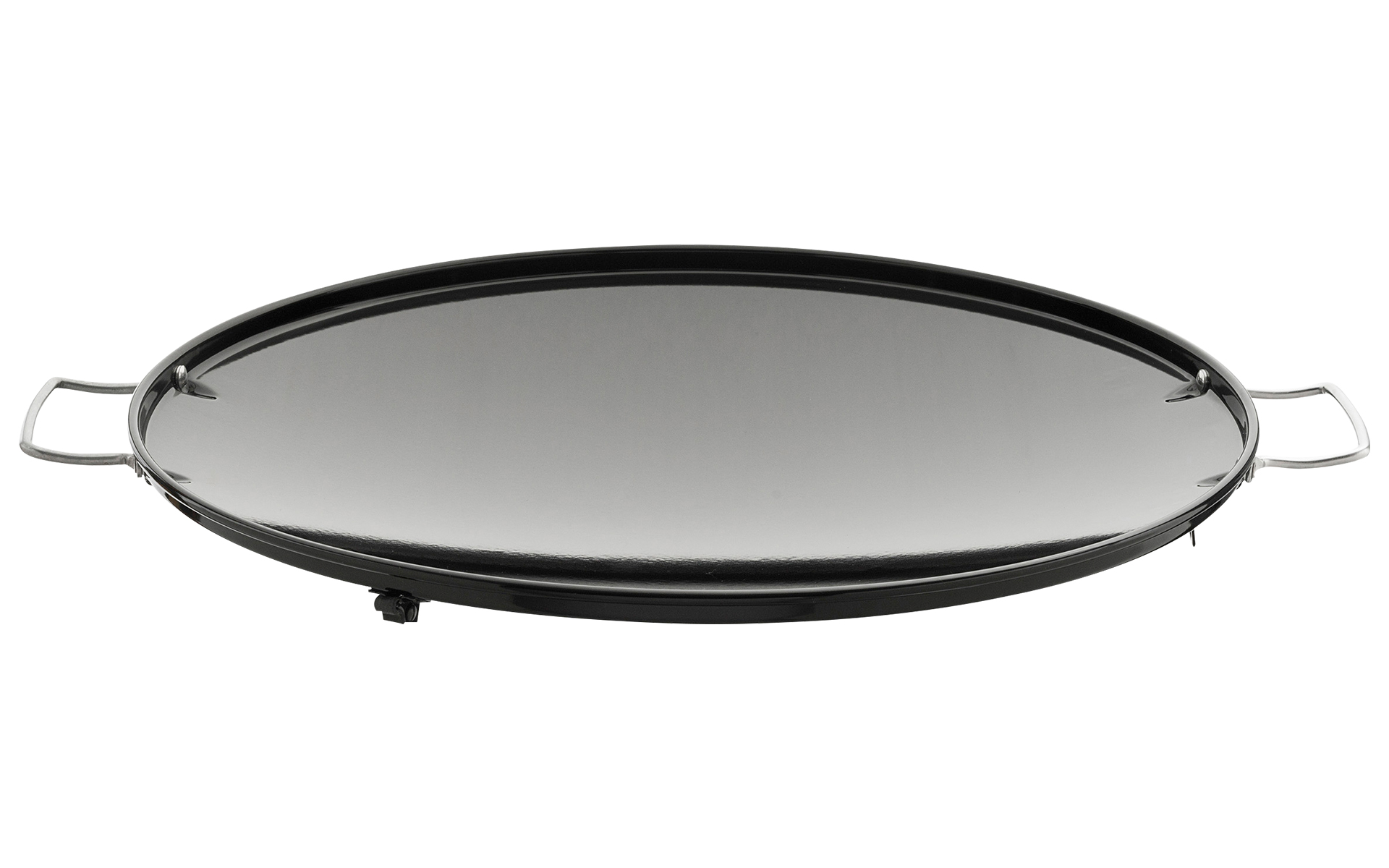 Mit 2 Handgriffen. Höhe (tiefste Stelle) 5,5 cm, Dicke 1,5 cm Durchmesser: 49 cm, Höhe: 5,5 cm, Farbe: schwarz