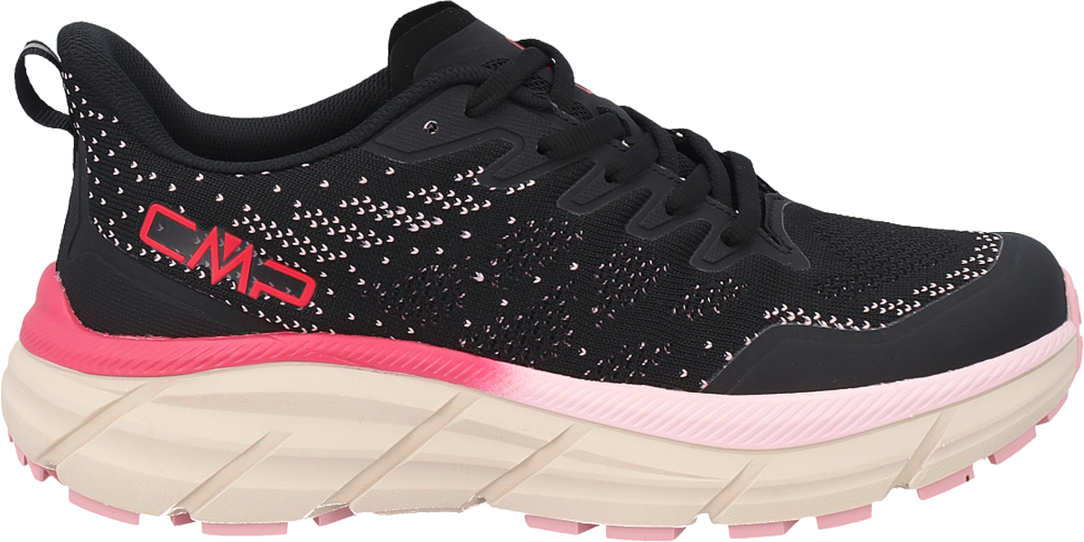 CMP Rahmsy Damen Multifunktionsschuh – Leicht, komfortabel und vielseitig Der Rahmsy ist ein vielseitiger Damen-Multifunktionsschuh, der sich flexibel an unterschiedliche Aktivitäten anpasst. Das unterschiedlich strukturierte Obermaterial aus Polyesterstrick sorgt für Atmungsaktivität und angenehmen Halt. TPU-Verstärkungen an Ferse, Zehenbereich und Zehenkappe erhöhen Stabilität und Schutz. Die thermogeformte Bullet-Einlegesohle passt sich selbstformend an deinen Fuß an und bietet hohen Gehkomfort. Mit einer Sprengung von 7 mm ermöglicht der Schuh einen harmonischen Bewegungsablauf. Die EVA-Zwischensohle und die robuste Gummilaufsohle mit spezieller CMP FullOn Grip Mischung sorgen für ausgewogene Dämpfung, guten Grip und zuverlässige Traktion. Der Schuh ist veganfreundlich und ideal für den vielseitigen Einsatz im Alltag und bei Outdoor-Aktivitäten. Details: * Multifunktionsschuh für vielseitige Aktivitäten * Comfort-Fit-Passform, für eng anliegenden Sitz eine Größe kleiner wählen * Obermaterial aus unterschiedlich strukturiertem Polyesterstrick * TPU-Einsatz an Ferse und Zehenkappe für zusätzliche Stabilität * Thermogeformte Bullet-Einlegesohle mit selbstformender Oberfläche * Vegan Friendly Technische Daten: * Obermaterial: 100 % Polyester * Innenmaterial: 100 % Polyester * Zwischensohle: EVA (Ethylvinylacetat) * Laufsohle: 80 % EVA (Ethylvinylacetat), 20 % Elastodien, Gummi mit CMP FullOn Grip * Sprengung: 7 mm Lieferumfang: * 1 Paar CMP Rahmsy Damen Multifunktionsschuhe Art Schuhe: Multifunktionsschuh, Geschlecht: Damen, Material: 100 % Polyester, Atmungsaktiv: Ja, Farbe: nero pink, Größe: 37