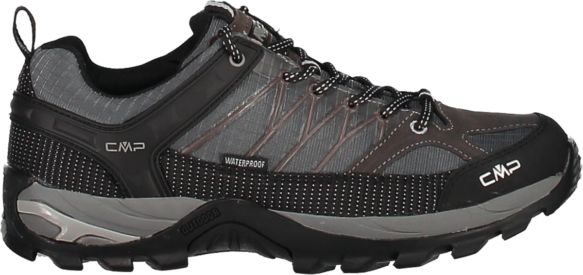 Rigel Low Waterproof Herren Wanderschuh – Leicht, stabil und wasserdicht unterwegs Der Rigel Low Waterproof ist die niedrige Variante des bewährten Rigel Trekkingschuhs und begleitet Dich zuverlässig auf Wanderungen in jedem Gelände. Das robuste Ripstop-Mesh-Obermaterial sorgt für Atmungsaktivität, während die wasserdichte Clima Protect Membran Deine Füße trocken hält. Dank EVA-Zwischensohle und integriertem TPU-Fersenelement genießt Du hohen Komfort und reduzierte Vibrationen, auch auf längeren Touren. Die griffige CMP FullOn Grip Laufsohle bietet sicheren Halt auf nassen und trockenen Untergründen. Details: * Niedriger Herren-Wanderschuh für Trekking und Outdoor-Aktivitäten * Wasserdichte Clima Protect Membran * Ripstop-Mesh-Obermaterial mit Lederanteil * Abriebfester Schutzstreifen und stabilisierendes Knöchelstützsystem * Dämpfende EVA-Zwischensohle mit TPU-Ferseneinsatz * Rutschfeste CMP FullOn Grip Gummisohle Technische Daten: * Obermaterial: 80 % Polyester, 20 % Leder * Innenmaterial: 100 % Polyester * Sohle: 80 % EVA (Ethylenvinylacetat), 20 % Elastodien * Einlegesohle: Ortholite Foam (Polyester) Lieferumfang: * 1 Paar Rigel Low Waterproof Herren Wanderschuhe Art Schuhe: Wanderschuh, Geschlecht: Herren, Material: 80 % Polyester, 20 % Leder, Atmungsaktiv: Ja, Wasserdicht: Ja, Farbe: grey, Größe: 41
