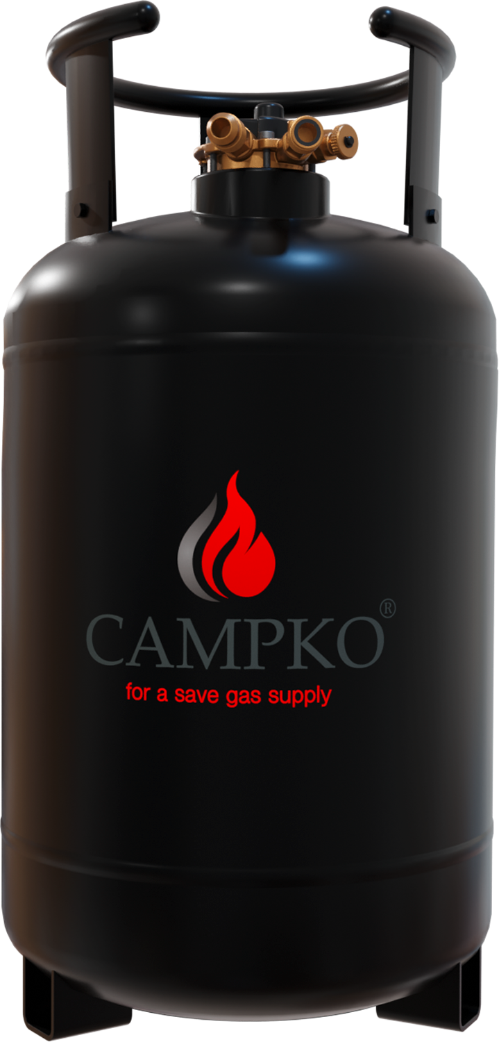 CAMPKO Gasflasche Stahl mit Multiventil 80 % Füllstopp 30 Liter unbefüllt – Gasflaschen