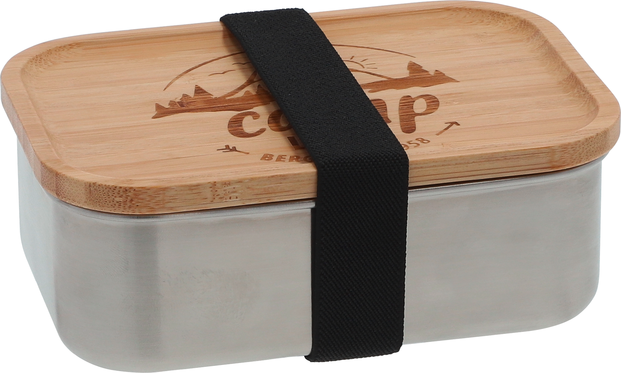 Camplife Edelstahldose mit Bambusdeckel und Gummiband 800 ml – Lebensmittelbehälter / Vorratsdosen