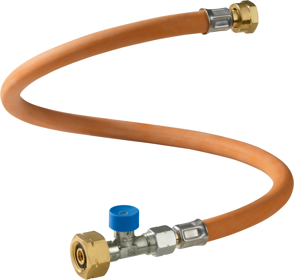 Hochdruck-Schlauchleitung mit Schlauchbruchsicherung zum Anschluss an alle wandmontierten Niederdruckregler mit Eingang AG M20 x 1,5 insbesondere für das Heizen während der Fahrt an das Gasflaschenventil Vorteile und Ausstattung • europaweite Verwendung durch den Einsatz von Hochdruck-Schlauchleitungen mit länderspezifischen Anschlüssen • Schlauchbruchsicherung SBS verhindert Gasaustritt bei Beschädigung bzw. Lösen der Schlauchleitung und sperrt den Gasdurchgang ab, sobald der Nenndurchfluss um 10 % überschritten wird • manuelle Schlauchbruchsicherung SBS/MA: keine Verzögerung bzw. Leckgasmenge, dafür manuelle Öffnung notwendig Konformität • Einzelarmaturen mit DIN-DVGW- bzw. DVGW-Baumusterprüfzertifikat Technische Daten • Schlauch: Gummi mit Textileinlage • Kältebeständig bis -30 °C Shop-Verpackung Caramatic ConnectDrive PS 30 bar Schlauchabmessung 6,3 x 5,0 mm Anschlüsse: Flaschenanschluss x Regleranschluss G.7 (Brit.POL) x M20 x 1,5 ÜM x 450 mm GB Propan a nur für Dänemark, England und Irland Dieser Artikel ist ausschließlich für United Kingdom verwendbar! Art Gasregler, Gasschläuche: Gasschlauch, Länge: 450 mm